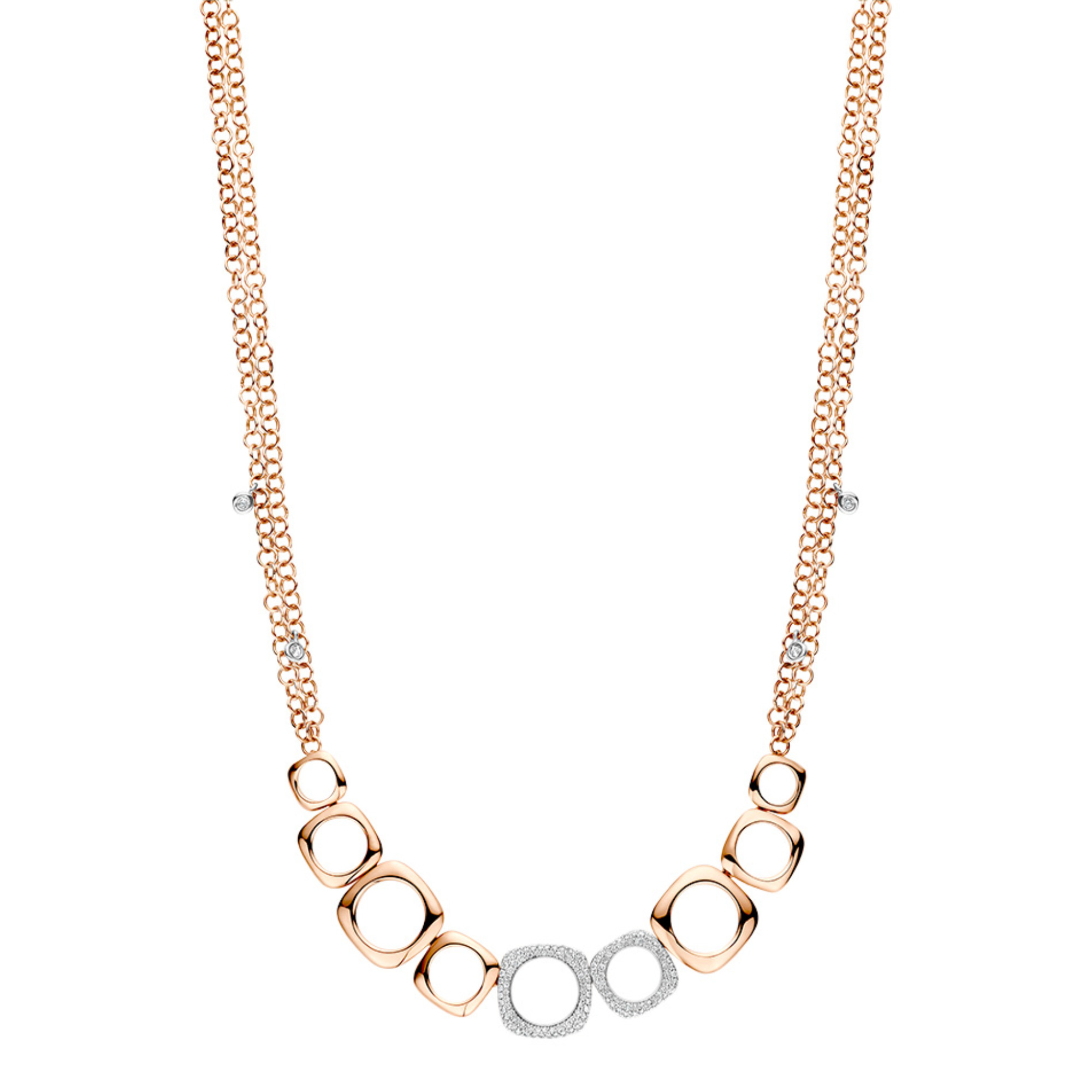 Ref. 20C34R_89 - Diese Elements Halskette ist aus 18-Karat Roségold gefertigt und mit weißen Diamanten besetzt.Die Kollektion "Elements" von BIGLI vereint zeitlose Eleganz mit modernen Akzenten und zeichnet sich durch edelste Materialien wie 18-Karat Roségold und funkelnde Diamanten aus. Jedes Schmuckstück dieser Kollektion spiegelt die perfekte Balance zwischen klassischer Schönheit und innovativem Design wider.
