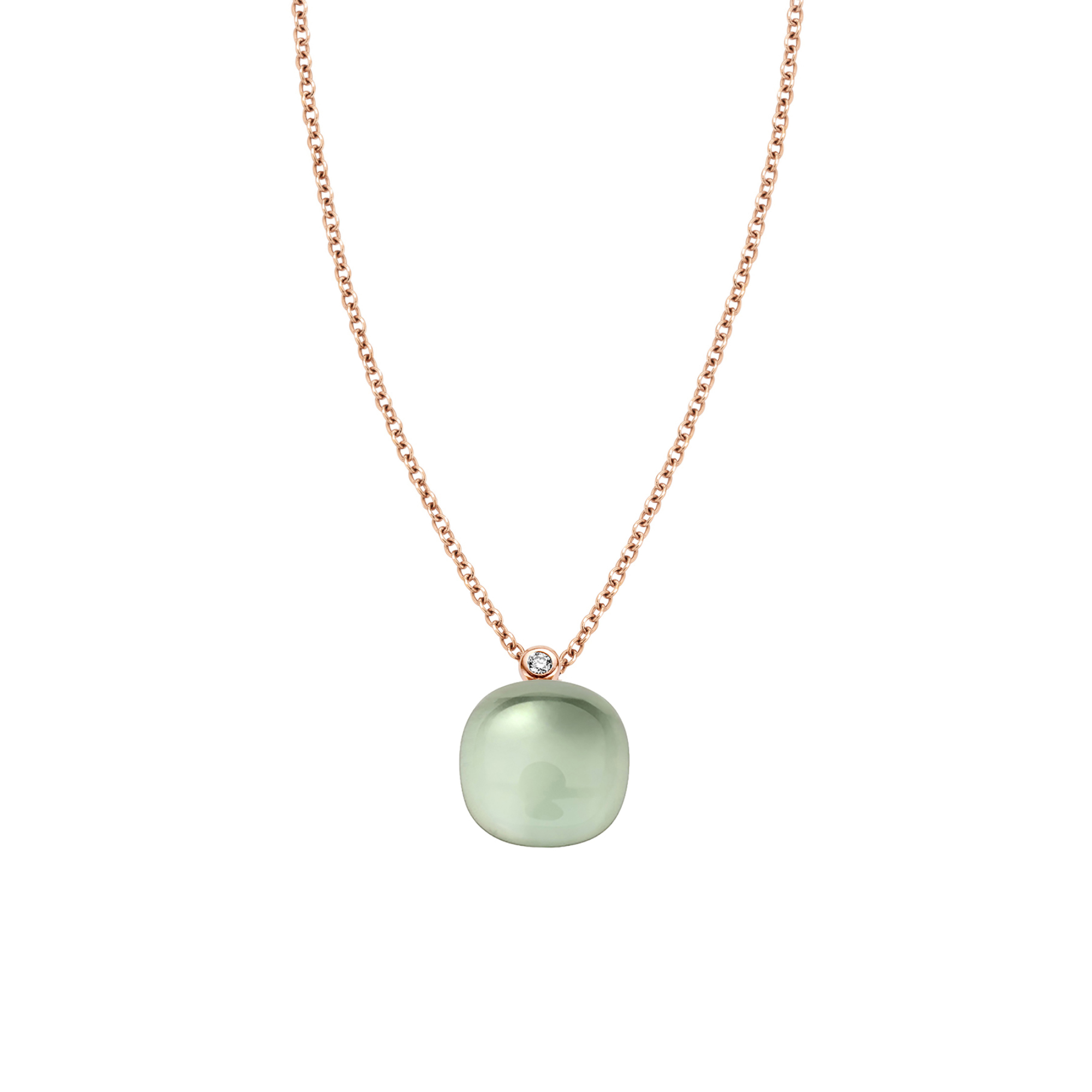 Ref. 20H34Rgamp_42 - Dieser Mini Sweety Anhänger ist aus 18-Karat Roségold gefertigt und mit grüner Amethyst, Perlmutt und unserem 0.01 ct. Signature-Diamanten besetzt. Die reizvollen Cabochons, die in 50 außergewöhnlichen Farbtönen erhältlich sind, sind definitiv das herausragendste Merkmal von BIGLI. Die Kollektion wurde mit einer ausgeklügelten Schichttechnik geschaffen, bei der mehrere Steinschichten miteinander kombiniert werden, um jedes Mal neue Farben und unterschiedliche Schattierungen und Intensitäten zu erzeugen. Alles 100% natürlich, 100% mineralisch.