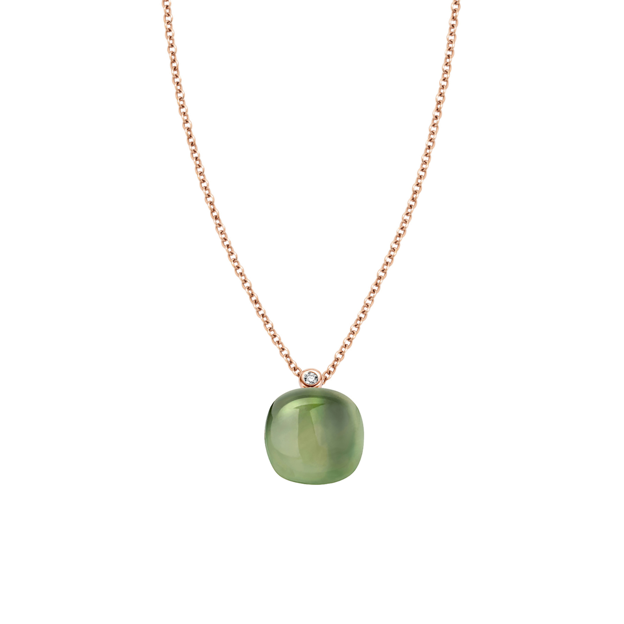 Ref. 20H34Rleavvermp_42 - Diese Mini Sweety Halskette mit Anhänger ist aus 18 Karat Roségold gefertigt und mit grünem Aventurin, Zitronenquarz und charakteristischen Diamanten von 0,02 Karat versehen.