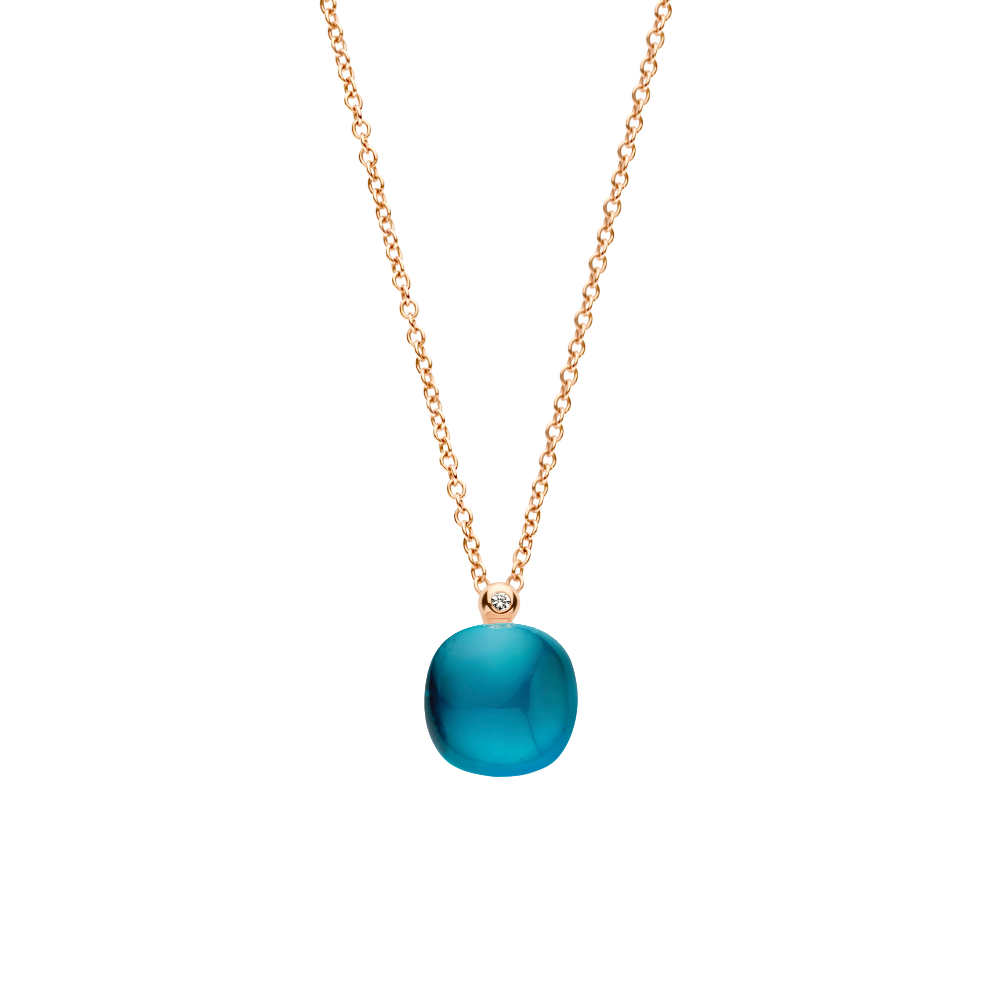 Ref. 20H34Rlobmp_42 - Diese Mini Sweety Halskette mit Anhänger ist aus 18 Karat Roségold gefertigt und mit London Blue Topas, Perlmutt und charakteristischen Diamanten von 0,02 Karat verziert.