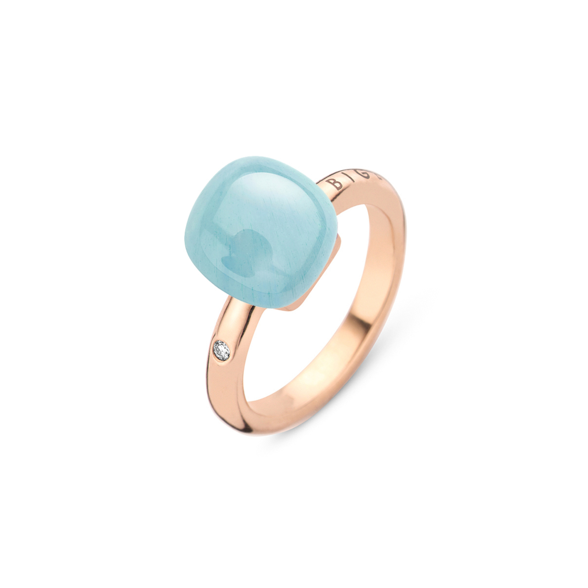 Ref. 20R88Raqlatu - Dieser Mini Sweety Ring ist aus 18-Karat Roségold gefertigt und mit Aquamarin, Türkis und unserem 0.02 ct. Signature-Diamanten besetzt.Aquamarin ist der Geburtsstein für März, entdecken Sie hier Ihren Geburtsstein. Die reizvollen Cabochons, die in 50 außergewöhnlichen Farbtönen erhältlich sind, sind definitiv das herausragendste Merkmal von BIGLI. Die Kollektion wurde mit einer ausgeklügelten Schichttechnik geschaffen, bei der mehrere Steinschichten miteinander kombiniert werden, um jedes Mal neue Farben und unterschiedliche Schattierungen und Intensitäten zu erzeugen. 1, 2 oder 3 Ringe zusammen, Diamanten oder keine Diamanten, 3 einzigartige Goldfarben, kreieren Sie sich einfach Ihr eigenes Glück mit Ihrer MINI SWEETY Kollektion. Alles 100% natürlich, 100% mineralisch.