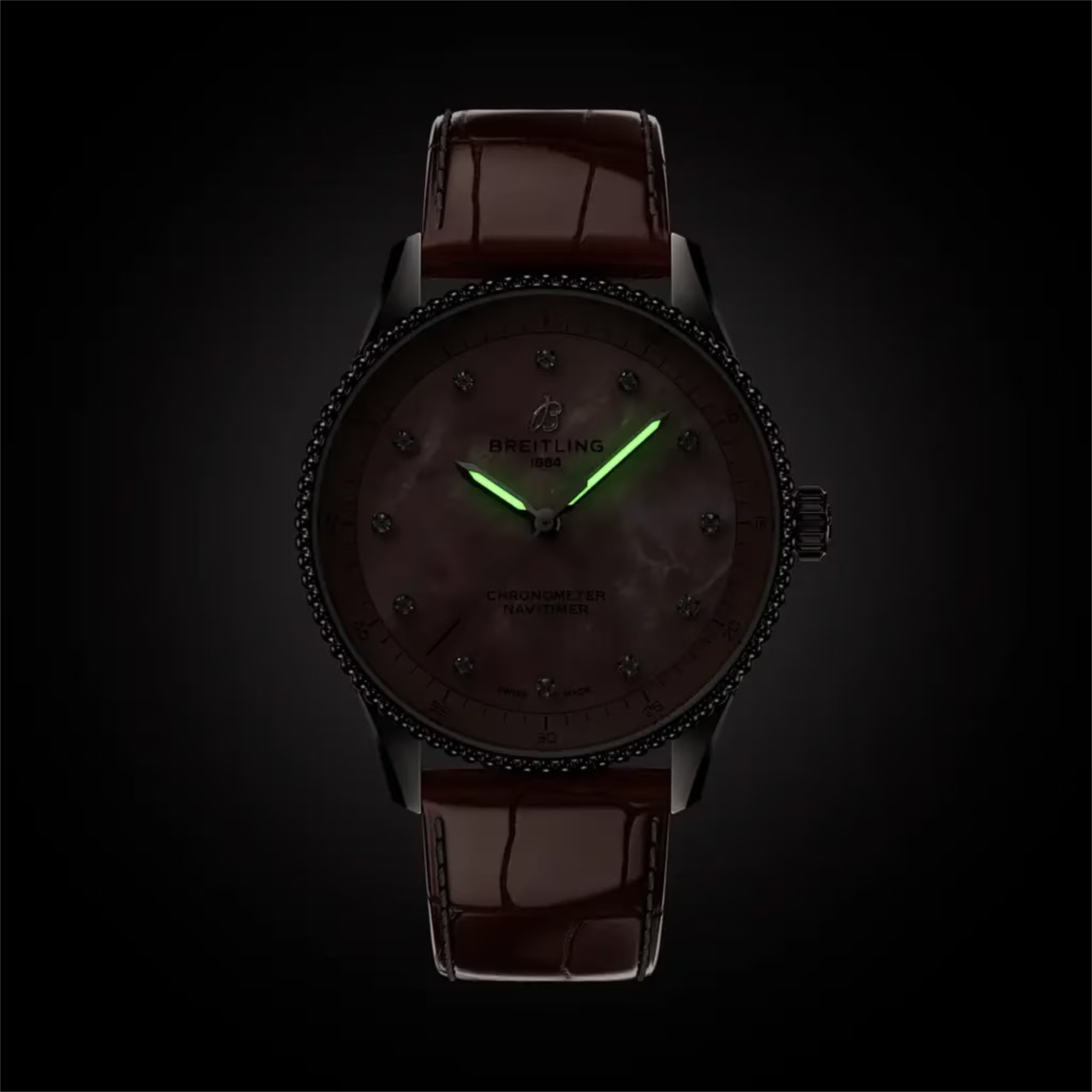 Ref. A77320D91K1P1 - Breitlings Ikone – für die Reise. Die Navitimer ist eine der bekanntesten Uhren, die je hergestellt wurden. Sie steht als eine der grossartigsten Uhren aller Zeiten auf den Sammlerlisten. Was 1952 als Instrument für Piloten begann, hat inzwischen eine tiefe Bedeutung für jeden, den dieser Zeitmesser auf seiner persönlichen Reise begleitet. Unsere Ikone kommt jetzt in den Grössen 36 und 32 mm für Frauen und Männer, die die Optik und Haptik einer Uhr mit kleinerem Durchmesser lieben. Während die 36-mm-Navitimer die Perlenlünette und den ikonischen kreisförmigen Rechenschieber aufweist, die der Navitimer ihr unverkennbares Aussehen verleihen, verzichtet die beeindruckende 32-mm-Variante auf den Rechenschieber zugunsten eines schlichteren Zifferblattdesigns, das auf den schlanken Durchmesser abgestimmt ist.