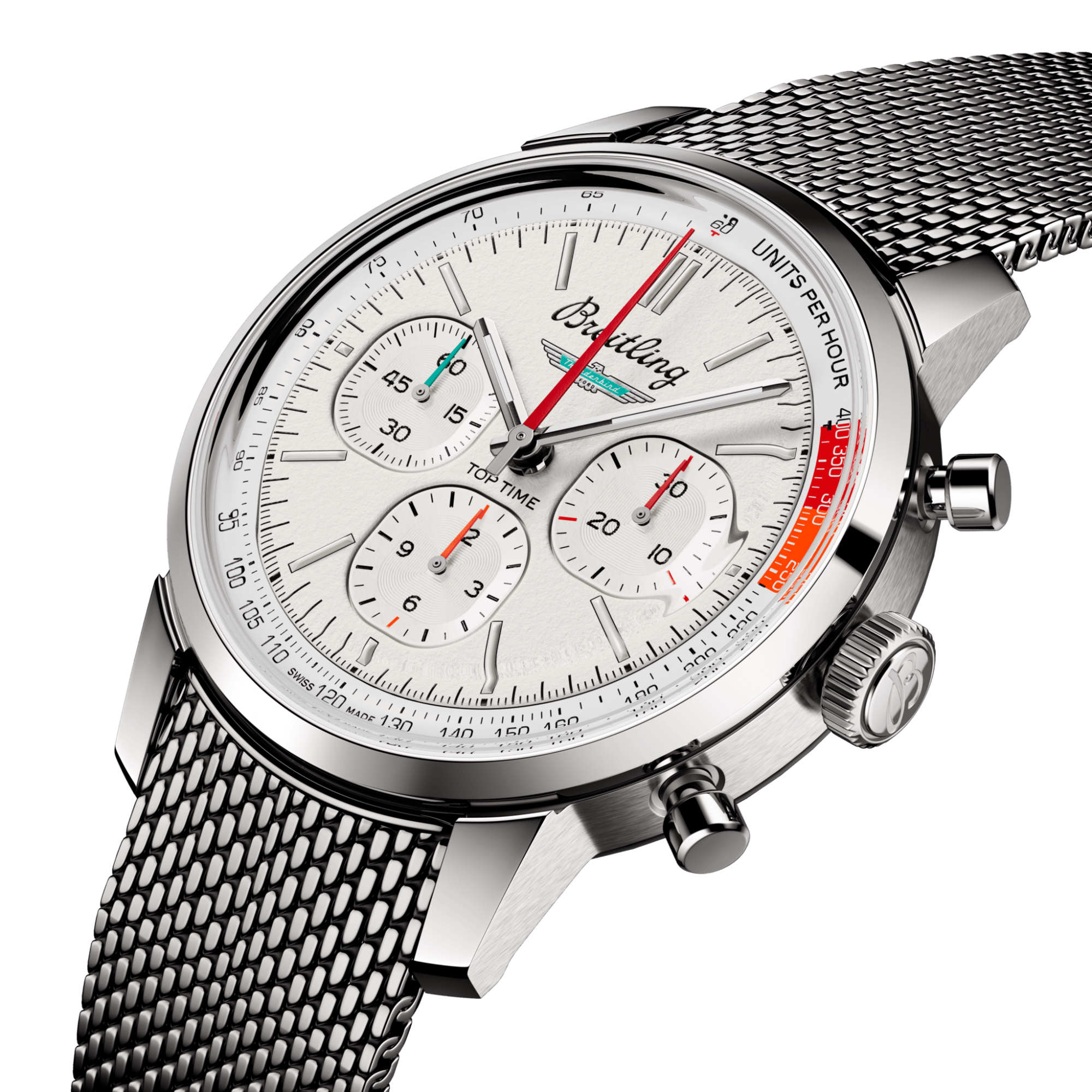 Ref. AB01766A1A1A1 - Die 1960er Jahre waren ein Jahrzehnt, das von Experimentierfreude, Spass, Freiheit und Energie geprägt war. Ob man mit einem Motorrad eine Spritztour machte oder in einem Sportwagen Gas gab, das Leben lief auf Hochtouren. Willy Breitling spürte diesen Tempowechsel und nahm sich vor, einen unkonventionellen Chronographen zu entwickeln, der den Schwung der Epoche einfing. Er nannte ihn die Top Time. Diese lebendige Tradition wird auch heute noch fortgesetzt, denn Breitling arbeitet bei der Entwicklung der Top Time mit einigen der angesagtesten Namen der Auto- und Motorradindustrie zusammen.