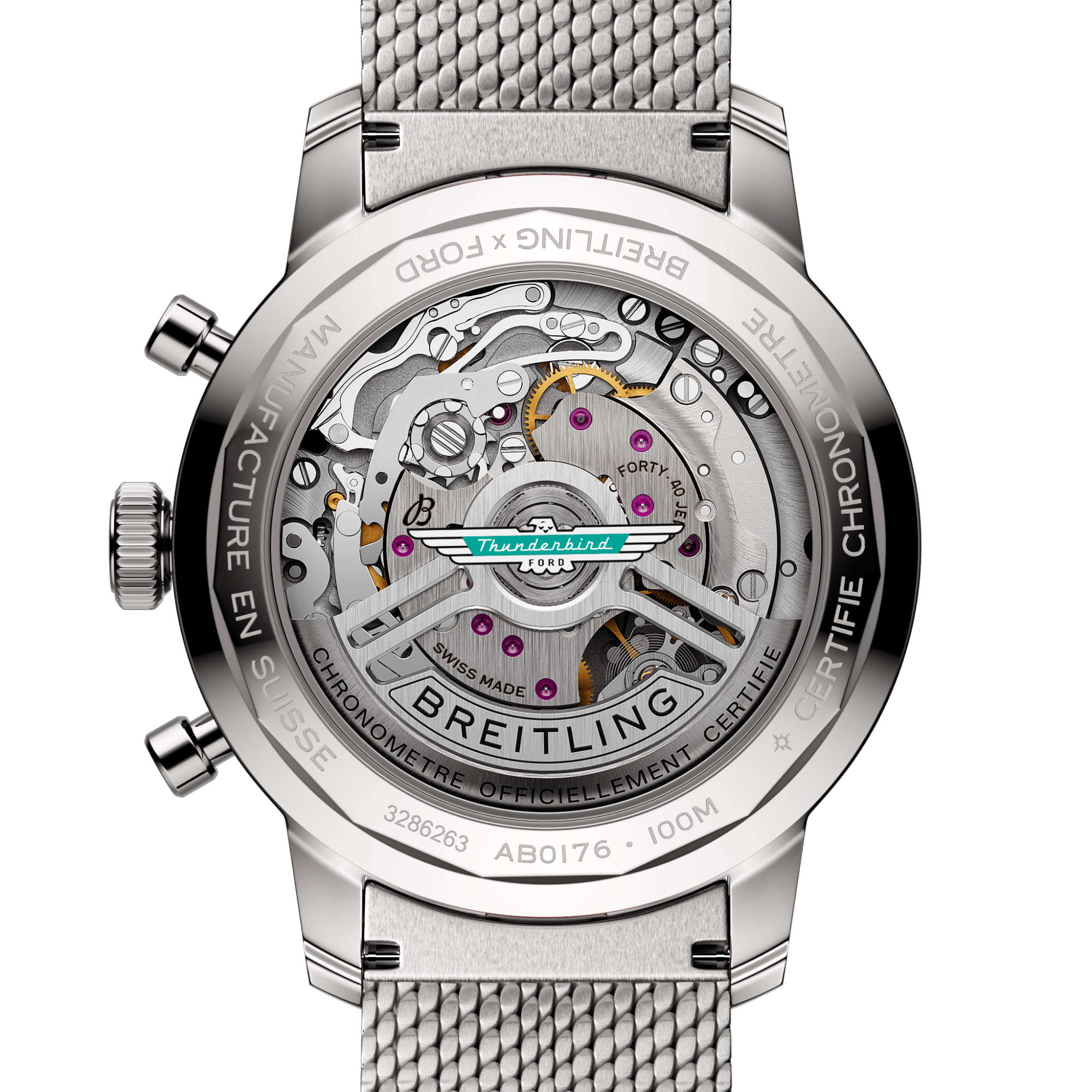 Der Ford Mustang der ersten Generation, der von 1964 bis 1974 produziert wurde, war das Auto der Stunde, wenn es darum ging, im coolen Amerika der 1960er Jahre auf die Strasse zu gehen. Die lebende Legende wird nach wie vor produziert, doch Autoliebhaber wissen, dass die allerersten Modelle, die den ungezähmten Geist der 1960er Jahre einfingen, auch die coolsten waren. Die Top Time B01 Ford Mustang verfügt über die Farben und das Emblem ihres Oldtimer-Pendants sowie über ein perforiertes Lederarmband, eine Tachymeterskala und kontrastierende «Squircle»-Zifferblätter (nicht ganz quadratisch, nicht ganz rund), die die besondere Atmosphäre klassischer Armaturenbretter erzeugen. Zudem hat sie einen Motor unter der Haube, mit dem man sich sehen lassen kann: das aussergewöhnliche Breitling-Manufakturkaliber 01.