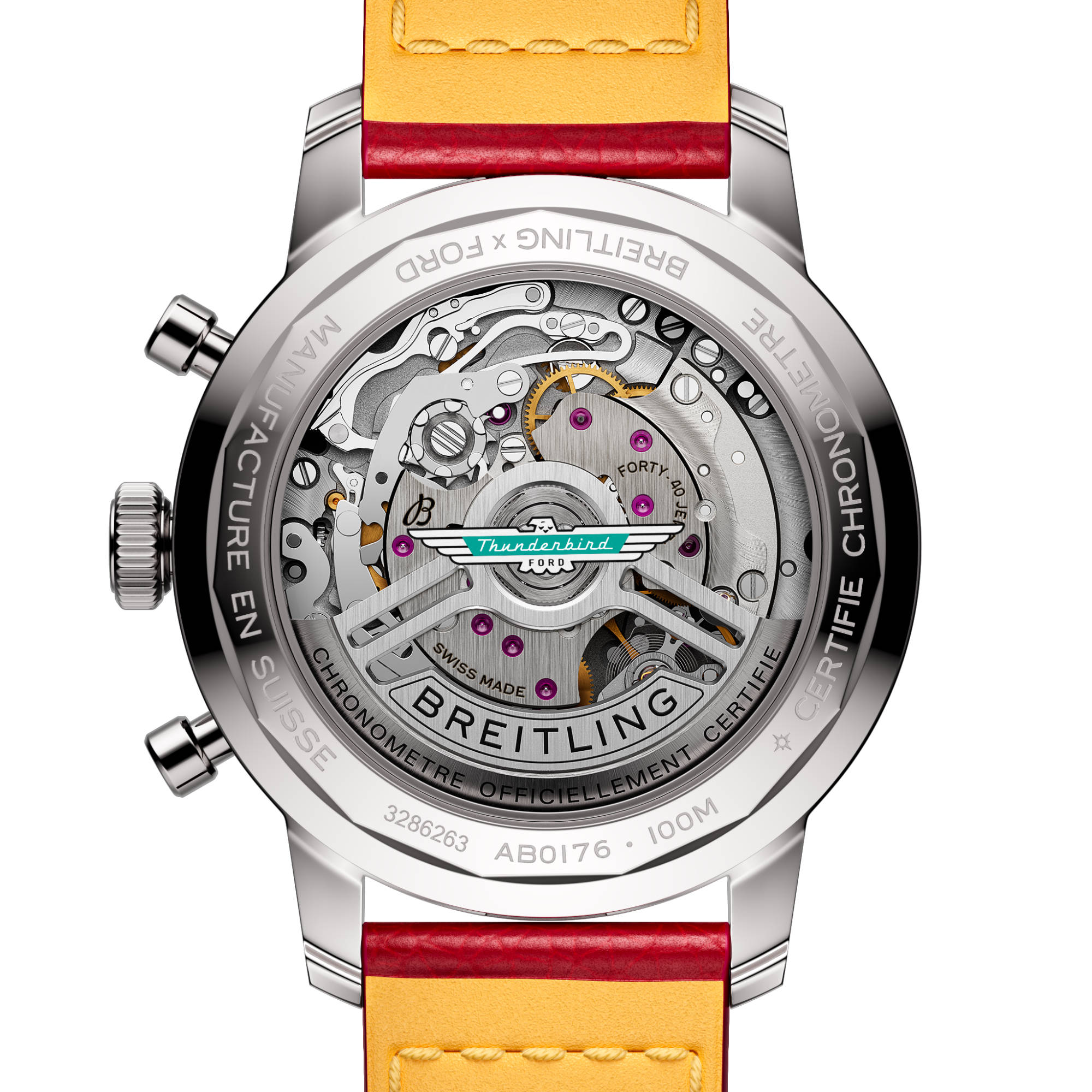 Der Ford Mustang der ersten Generation, der von 1964 bis 1974 produziert wurde, war das Auto der Stunde, wenn es darum ging, im coolen Amerika der 1960er Jahre auf die Strasse zu gehen. Die lebende Legende wird nach wie vor produziert, doch Autoliebhaber wissen, dass die allerersten Modelle, die den ungezähmten Geist der 1960er Jahre einfingen, auch die coolsten waren. Die Top Time B01 Ford Mustang verfügt über die Farben und das Emblem ihres Oldtimer-Pendants sowie über ein perforiertes Lederarmband, eine Tachymeterskala und kontrastierende «Squircle»-Zifferblätter (nicht ganz quadratisch, nicht ganz rund), die die besondere Atmosphäre klassischer Armaturenbretter erzeugen. Zudem hat sie einen Motor unter der Haube, mit dem man sich sehen lassen kann: das aussergewöhnliche Breitling-Manufakturkaliber 01.
