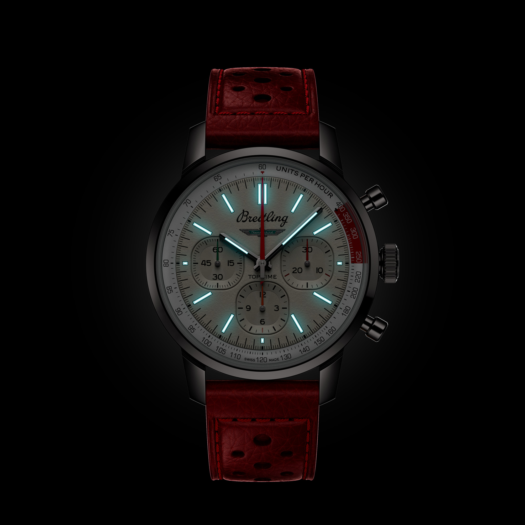 Ref. AB01766A1A1X1 - Die 1960er Jahre waren ein Jahrzehnt, das von Experimentierfreude, Spass, Freiheit und Energie geprägt war. Ob man mit einem Motorrad eine Spritztour machte oder in einem Sportwagen Gas gab, das Leben lief auf Hochtouren. Willy Breitling spürte diesen Tempowechsel und nahm sich vor, einen unkonventionellen Chronographen zu entwickeln, der den Schwung der Epoche einfing. Er nannte ihn die Top Time. Diese lebendige Tradition wird auch heute noch fortgesetzt, denn Breitling arbeitet bei der Entwicklung der Top Time mit einigen der angesagtesten Namen der Auto- und Motorradindustrie zusammen.