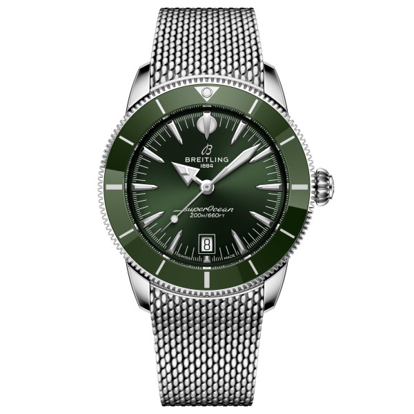 Auch heute noch ist diese Philosophie das Herzstück der Superocean Heritage. Die Seele der 50er Jahre, aber im neuen Kleid für die Gegenwart. Die neueste Superocean Heritage baut auf allem auf, was das Original unverwechselbar gemacht hat, und verfeinert es. Die Kollektion führt das Automatik-Uhrwerk B31 ein, Breitlings erstes exklusives Manufaktur-Kaliber mit drei Zeigern. Eine Lünette mit Keramikeinlage bietet außergewöhnliche Kratzfestigkeit, während die integrierten Armbänder aus Mesh-Metall oder Mesh-Kautschuk eng am Gehäuse anliegen und mit Faltschließen für ein sauberes, wasserdichtes Finish gesichert werden. Ein diskretes Datumsfenster auf sechs Uhr und die originalen Signaturzeiger– Pfeil für die Stunden, Speer für die Minuten – sorgen für Ablesbarkeit und Ausgewogenheit, über oder unter der Oberfläche.