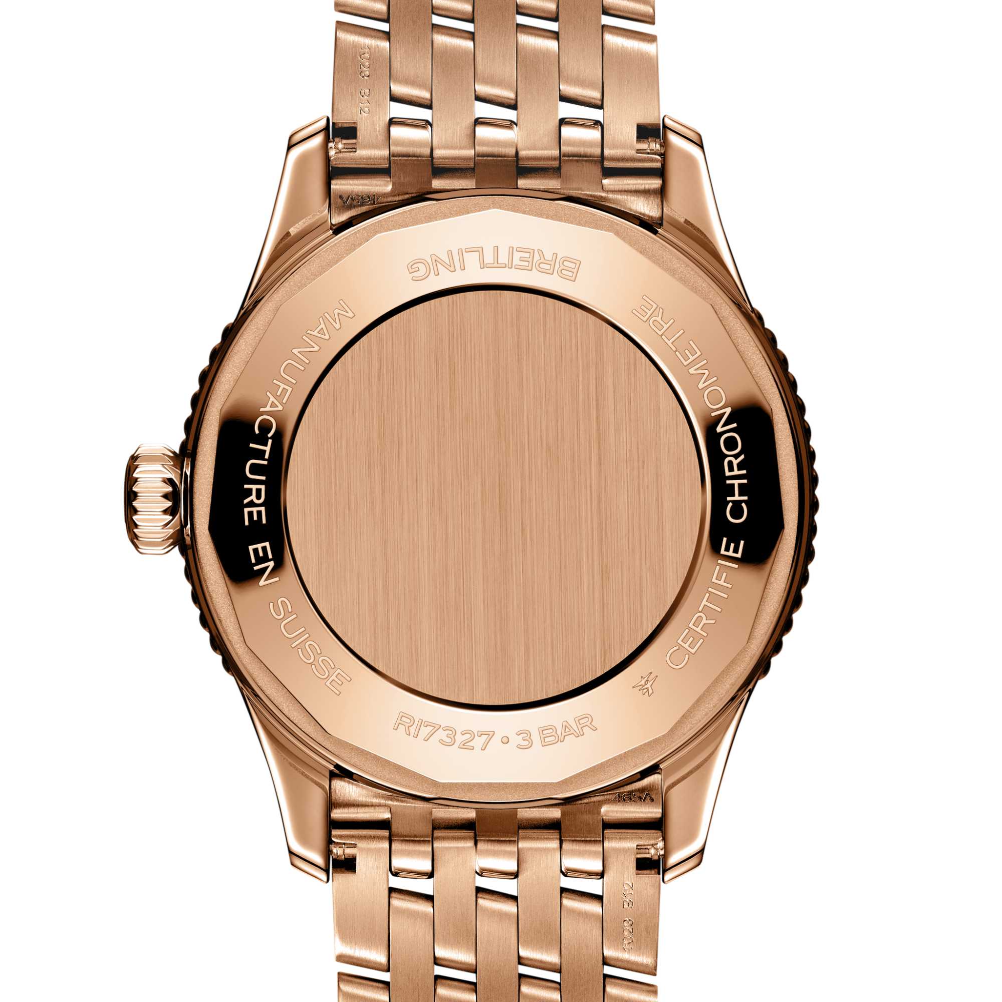 Ref. R17327211A1R1 - Breitlings Ikone – für die Reise. Die Navitimer ist eine der bekanntesten Uhren, die je hergestellt wurden. Sie steht als eine der grossartigsten Uhren aller Zeiten auf den Sammlerlisten. Was 1952 als Instrument für Piloten begann, hat inzwischen eine tiefe Bedeutung für jeden, den dieser Zeitmesser auf seiner persönlichen Reise begleitet. Unsere Ikone kommt jetzt in den Grössen 36 und 32 mm für Frauen und Männer, die die Optik und Haptik einer Uhr mit kleinerem Durchmesser lieben. Während die 36-mm-Navitimer die Perlenlünette und den ikonischen kreisförmigen Rechenschieber aufweist, die der Navitimer ihr unverkennbares Aussehen verleihen, verzichtet die beeindruckende 32-mm-Variante auf den Rechenschieber zugunsten eines schlichteren Zifferblattdesigns, das auf den schlanken Durchmesser abgestimmt ist.