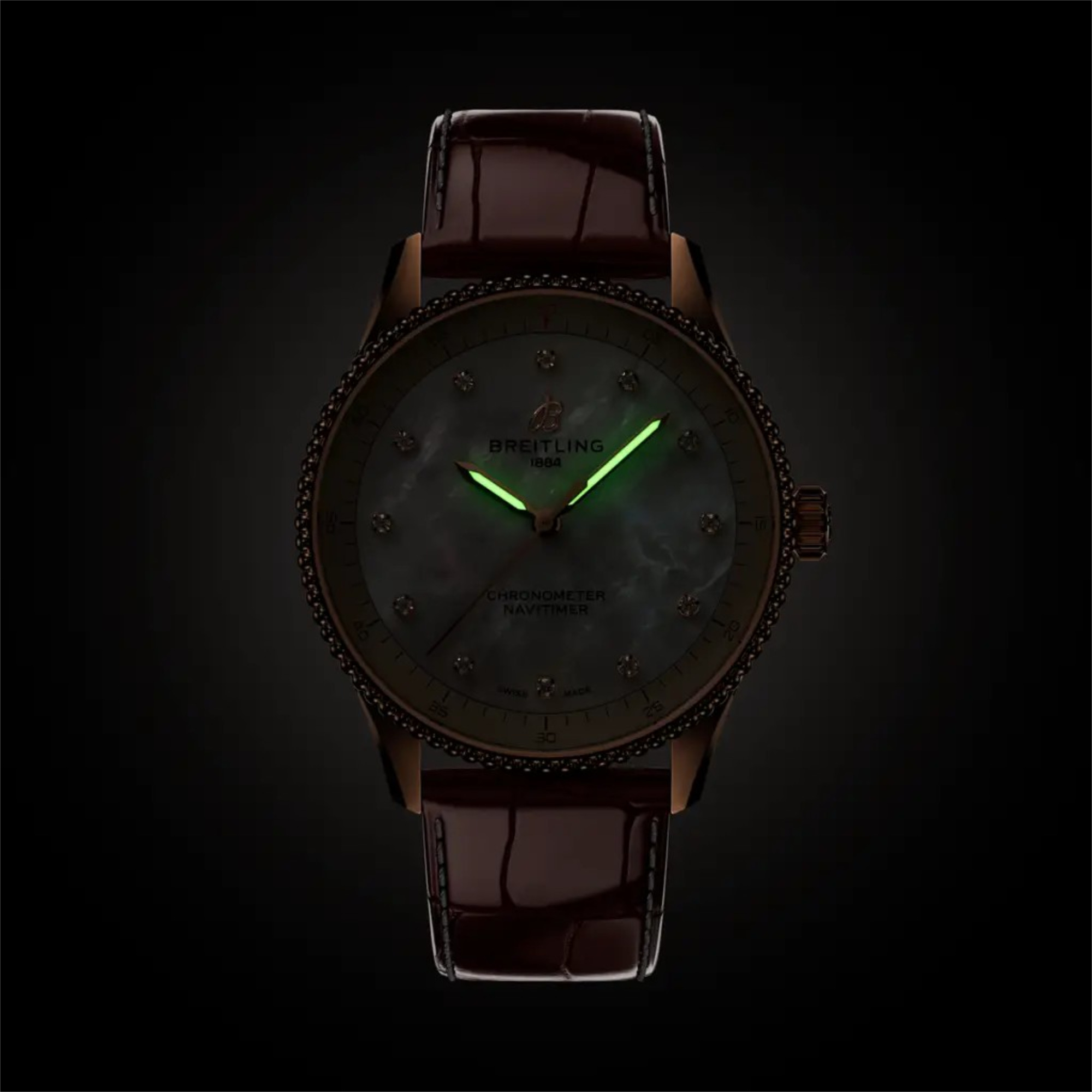 Während die 36-mm-Navitimer die Perlenlünette und den ikonischen kreisförmigen Rechenschieber aufweist, die der Navitimer ihr unverkennbares Aussehen verleihen, verzichtet die beeindruckende 32-mm-Variante auf den Rechenschieber zugunsten eines schlichteren Zifferblattdesigns, das auf den schlanken Durchmesser abgestimmt ist. Doch diese Blickfänger haben so viel mehr zu bieten als nur ihre schlanke neue Grösse. Pastelltöne, Perlmutt und rückverfolgbare Rohstoffe verbinden sich mit dezenten Feinheiten, um den Zeitmessern einen schmuckähnlichen Charakter zu verleihen – zusätzliche vielseitige Eleganz für die legendäre Navigationsuhr, die bereit für all Ihre Reisen ist.