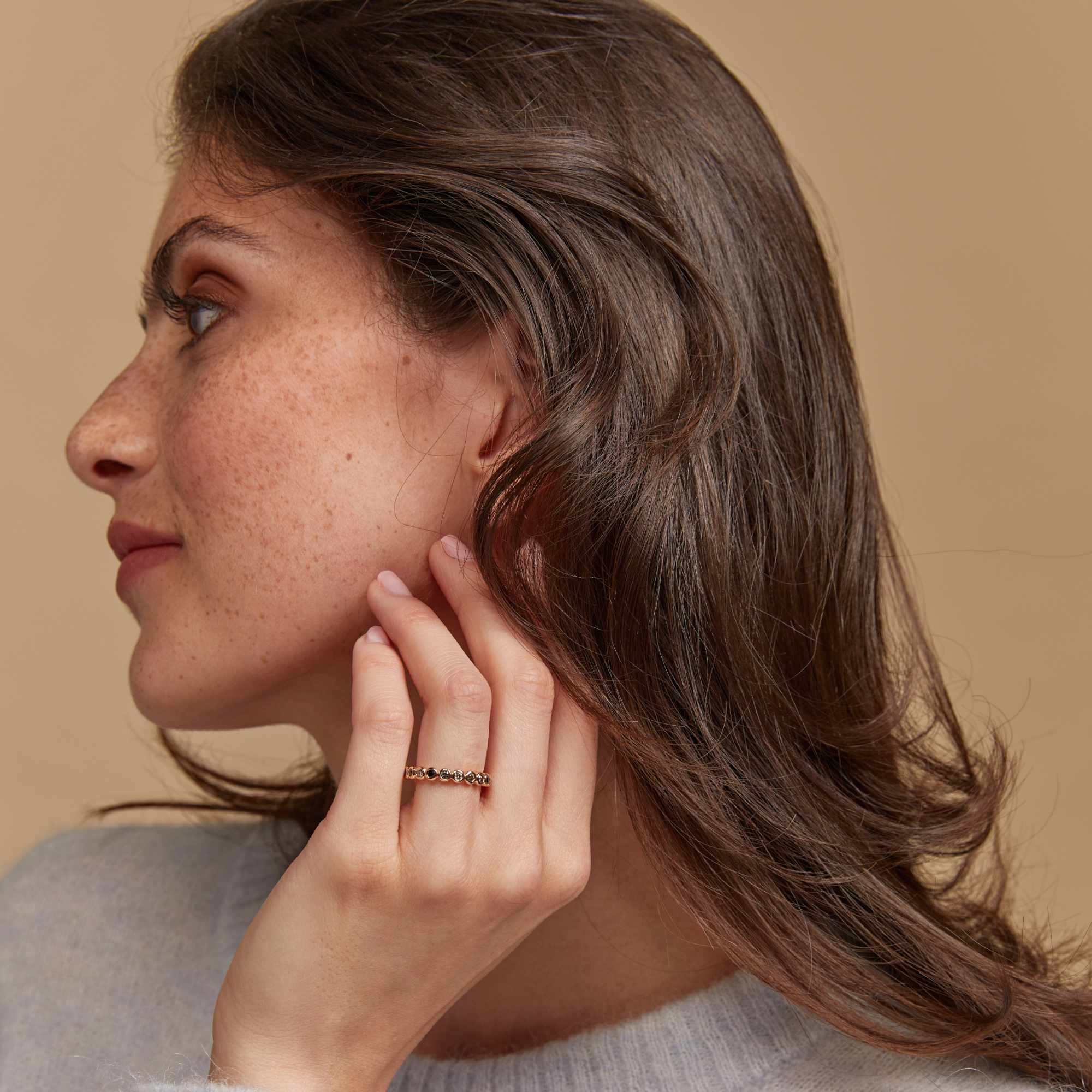 Ref. 8RR4893KIWI - Zehn Saphire und fünf champagner Diamanten feiern ein Fest an Ihrem Finger. Dies ist die kleinste Edition unseres Confetti Rings.