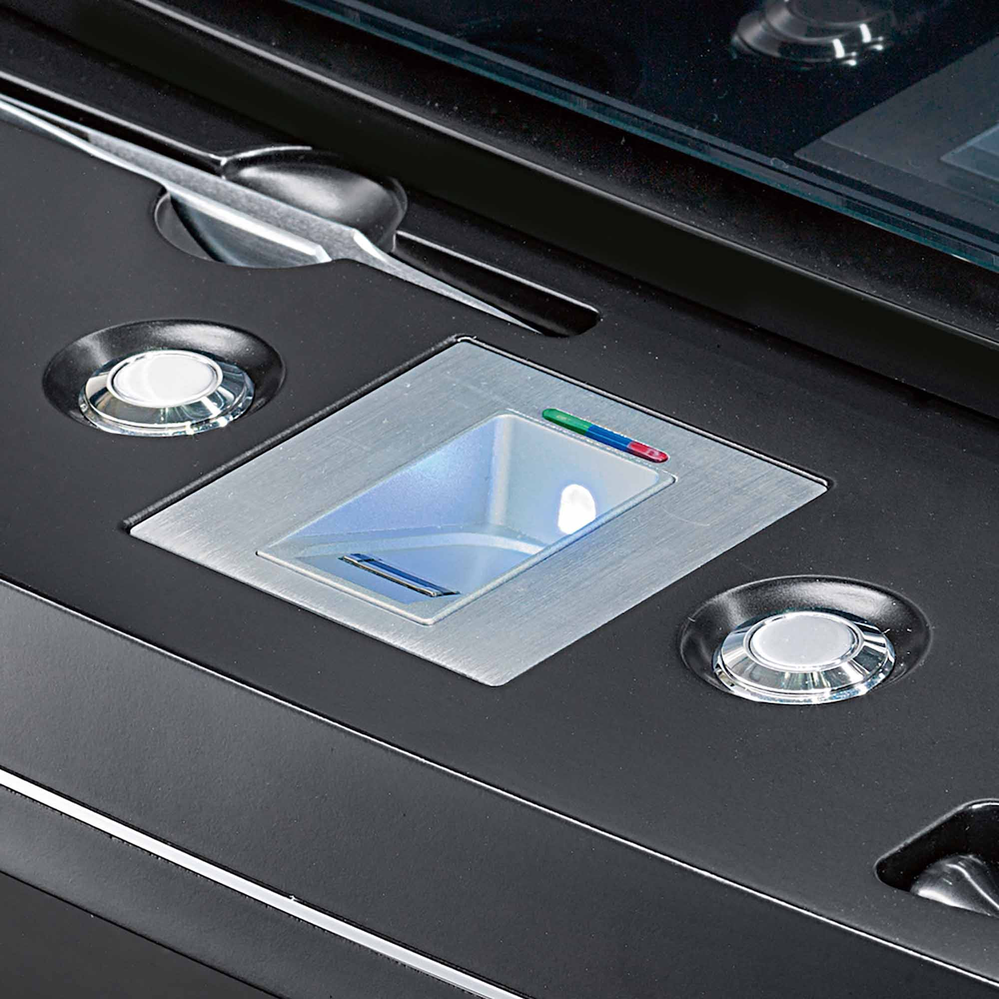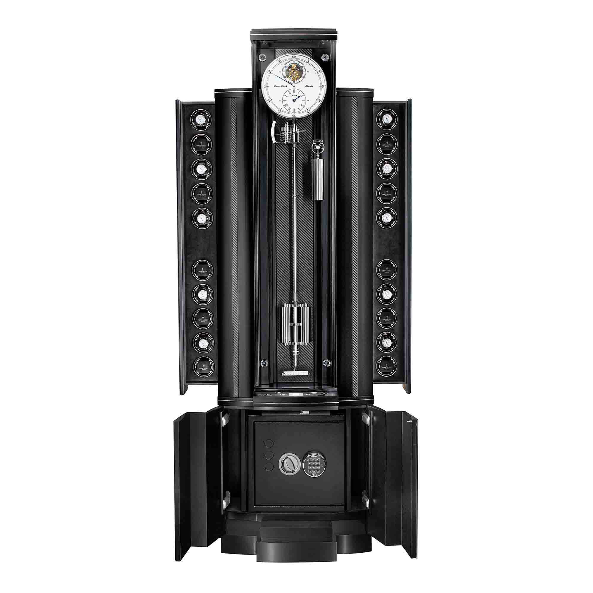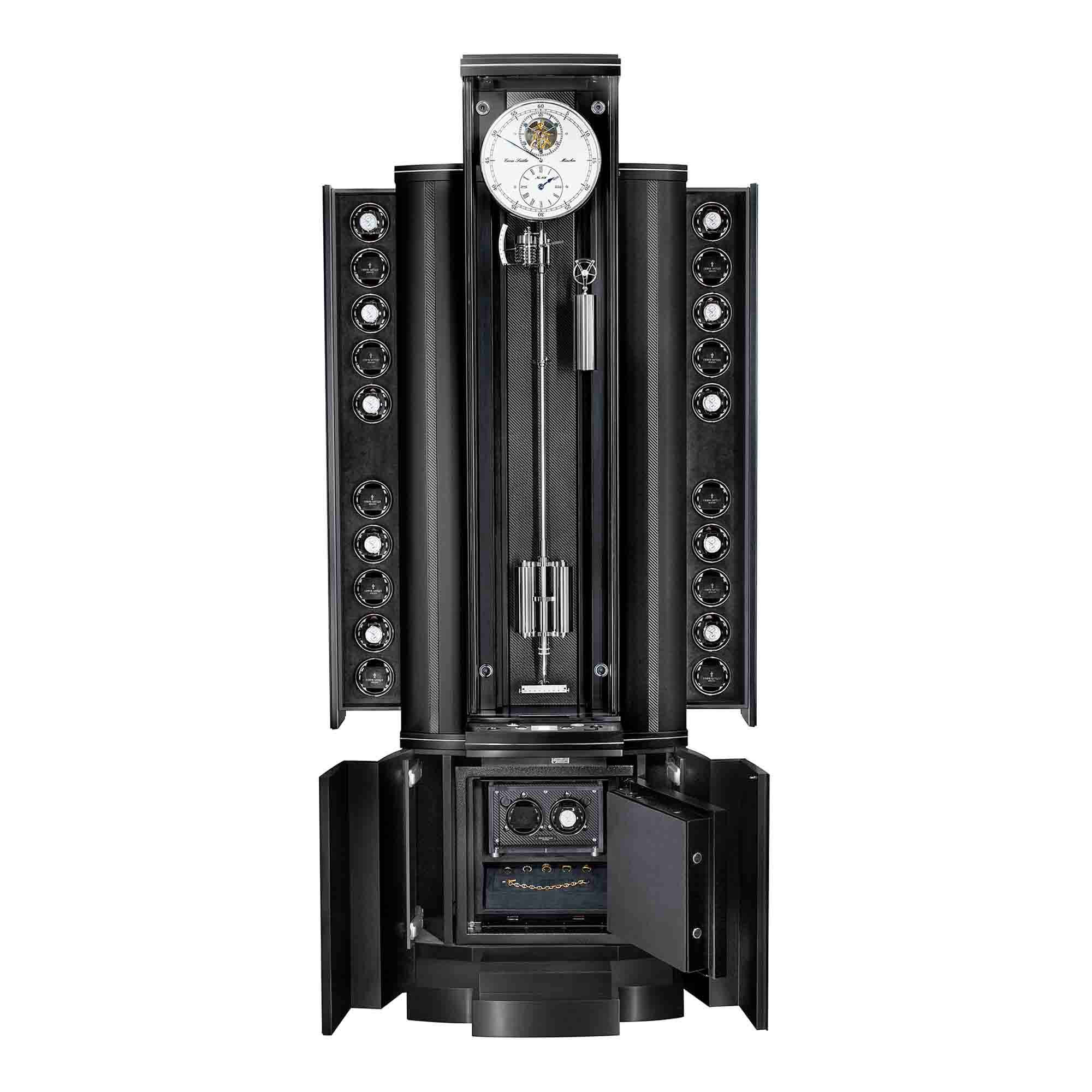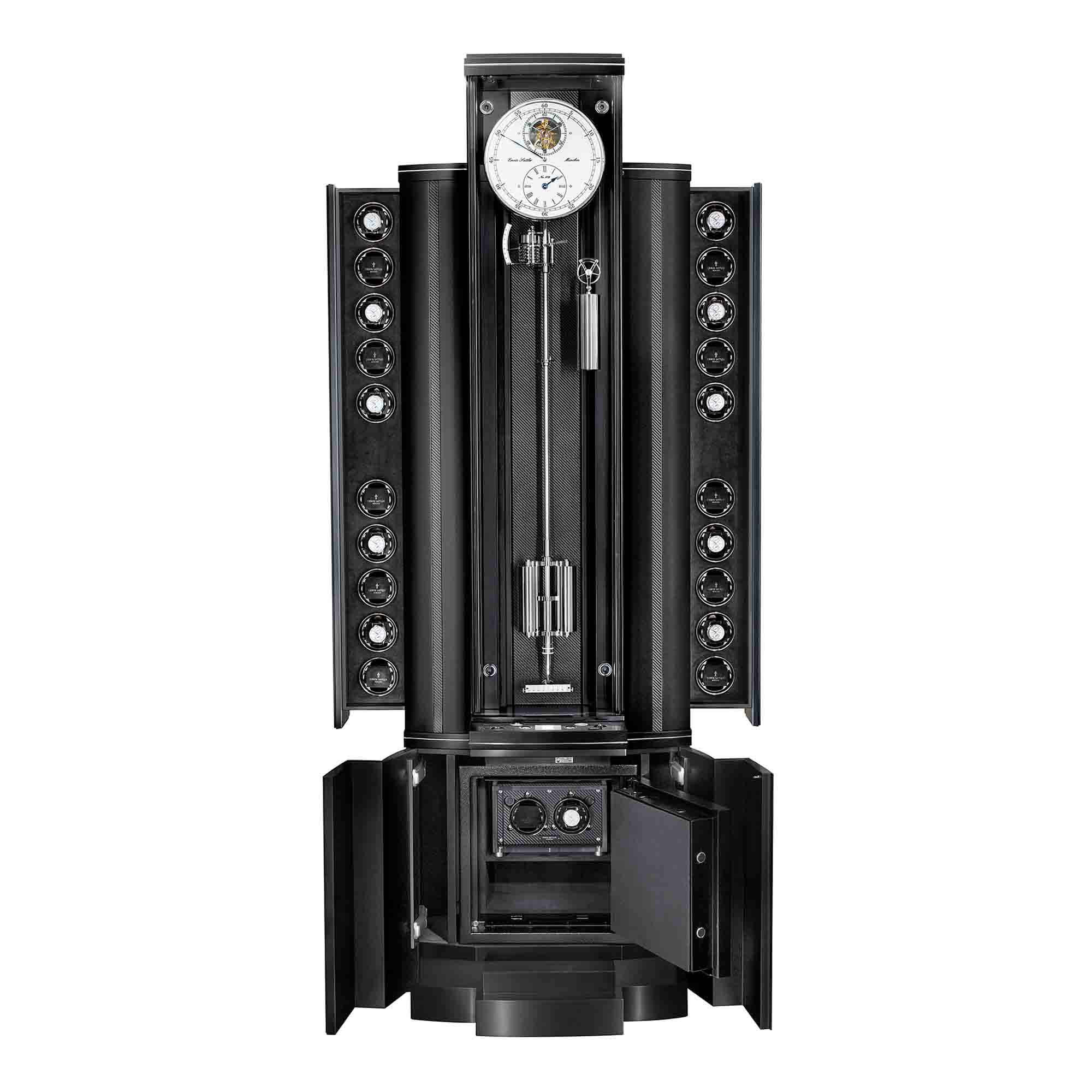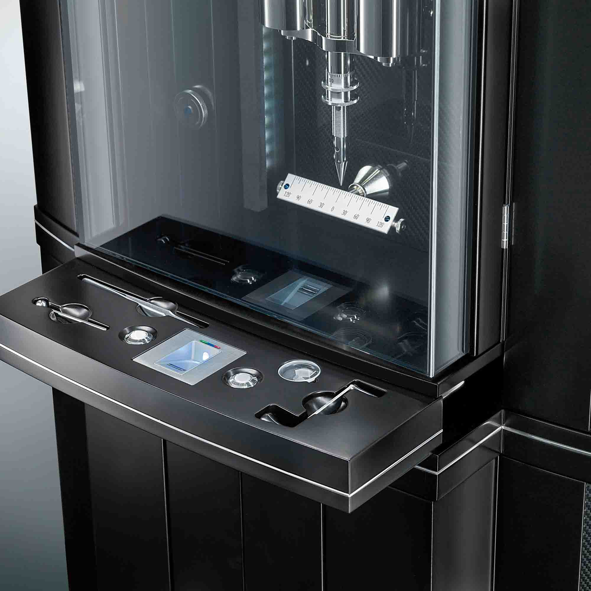 Schwarzer Schleiflack mit Metallintarsien und Carbon-Einlagen