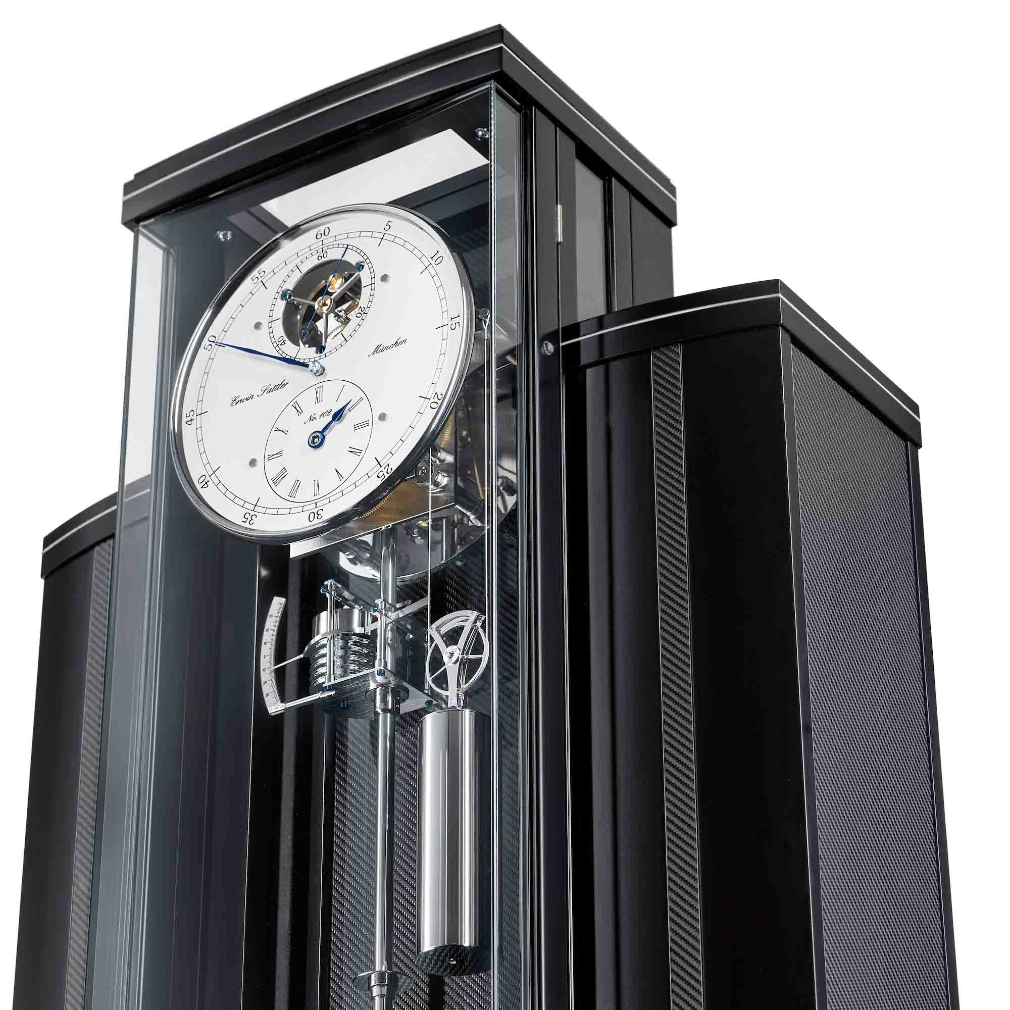 Gangregler: Invarpendel Ø 12 mm, Temperatur- und Luftdruckkompensation durch 5 Aneroiddosen mit Anzeige des Luftdrucks in mm/Hg