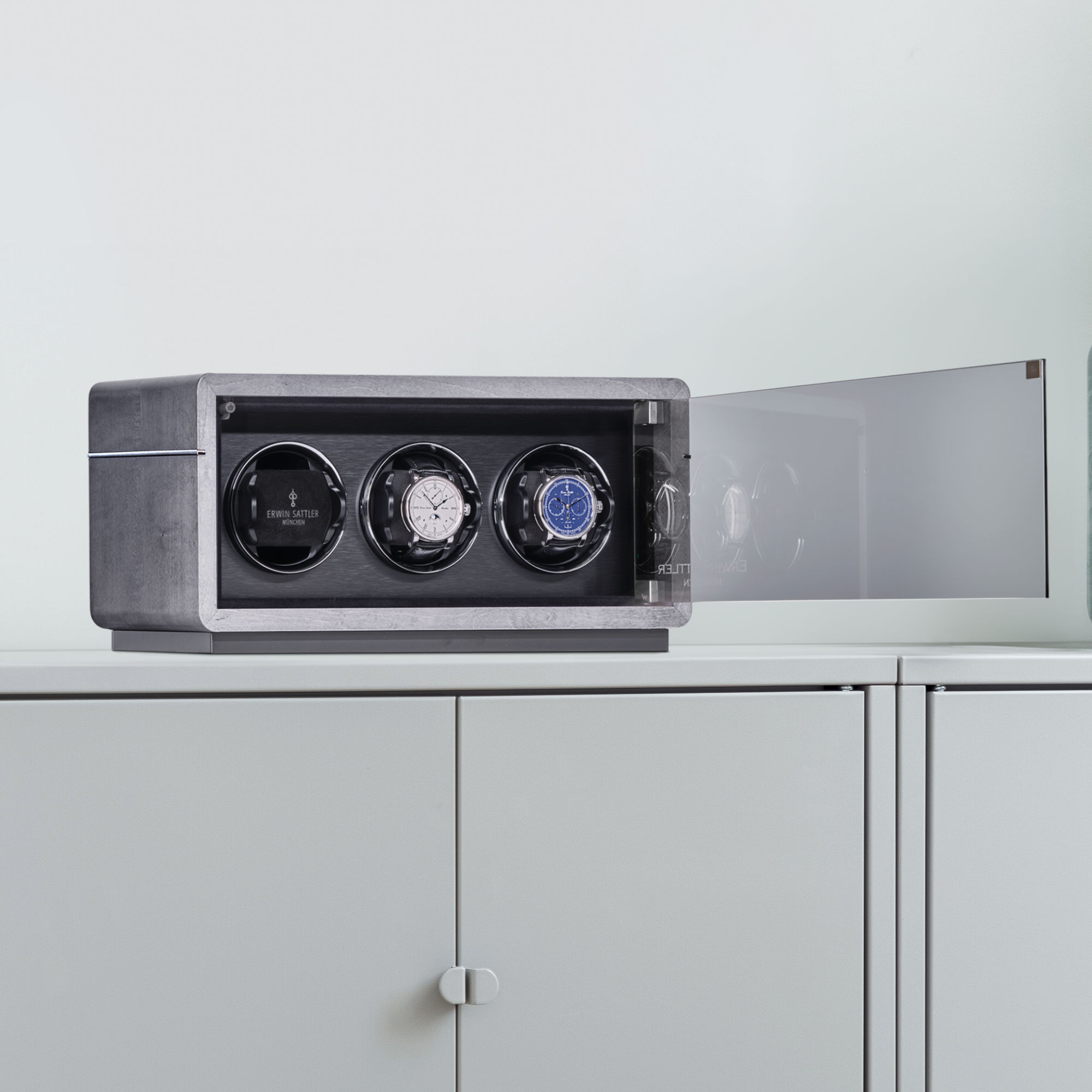 Der Rotalis 3.2 ist der ideale Uhrenbeweger um bis zu drei Automatik Armbanduhren zuverlässig aufzubewahren und in Bewegung zu halten. Drei unabhängig programmierbare Motoren sorgen mit ihrem leisen Lauf nicht nur für einen geräuschlosen Betrieb, sondern setzen auch die Anforderungen der entsprechenden Armbanduhren zuverlässig um.