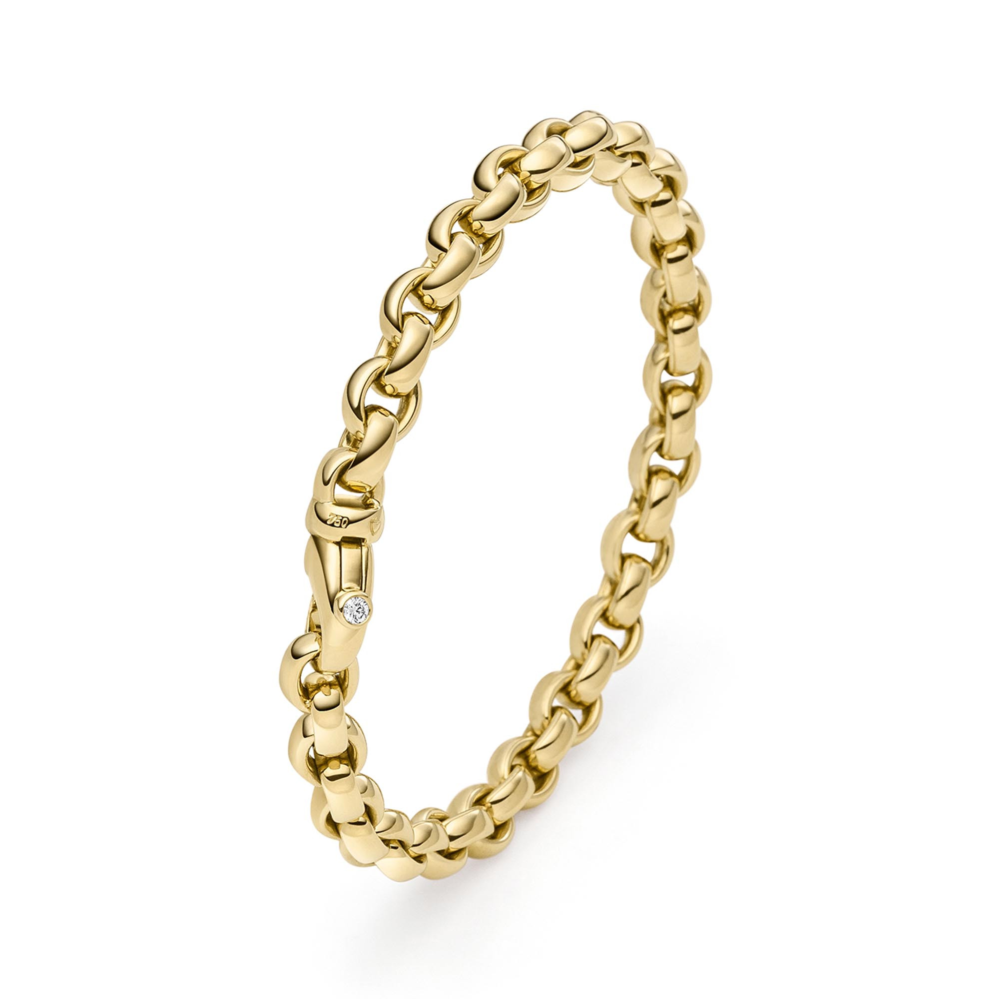 Ref. 04106/19BBK-GG - Der Klassiker von IsabelleFa mit 6 mm Breite. Neben der Navette-Kette sind es definitiv die Ketten aus der Serie ChaCha, wenn es um Design-Klassiker von IsabelleFa geht. Handgefertigtes Armband aus 18 Karat Gold. Der typische kleine IsabelleFa Diamant (0,04 ct. G/VVS-VS) zeigt seiner Trägerin die Stelle, an welcher Sie Ihr Schmuckstück öffnen kann. ChaCha-Colliers und ChaCha-Armbänder können miteinander verbunden werden, um daraus eine lange Halskette zu machen.