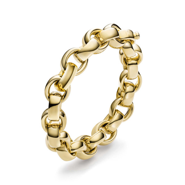 Ref. 04114/21BKL-GG - Der Klassiker von IsabelleFa in 14 mm Breite. Neben den Navette-Ketten sind es definitiv die Ketten aus der Serie ChaCha, wenn es um Design-Klassiker von IsabelleFa geht. Handgefertigtes Armband aus 18 Karat Gold. Der typische kleine IsabelleFa Diamant zeigt seiner Trägerin die Stelle, an welcher Sie Ihr Schmuckstück öffnen kann. Zwei ChaCha-Armbänder können miteinander verbunden werden, um daraus ein Collier zu machen.