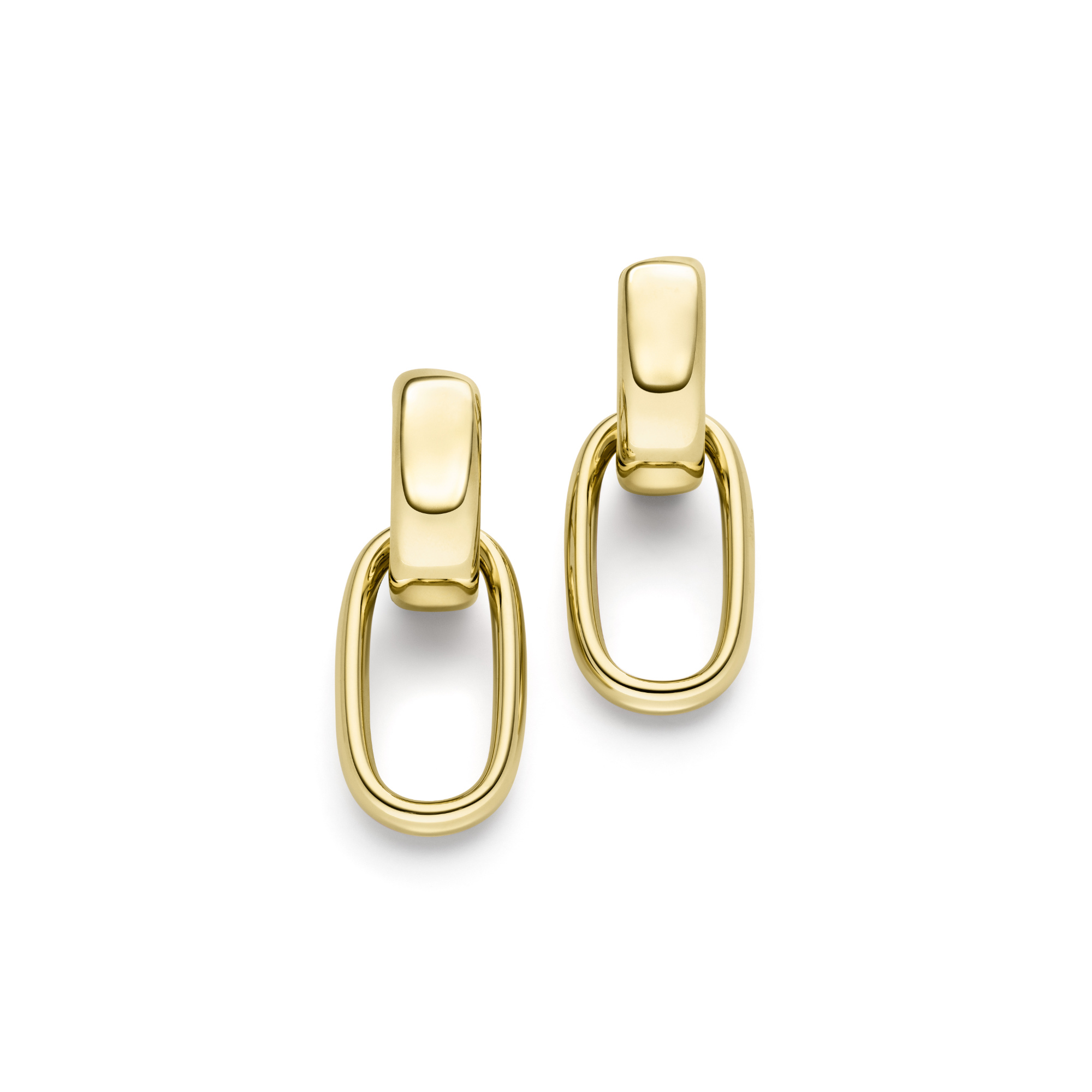 Die neuen "ChaCha 16" Ohrringe sind echte Verwandlungskünstler. Zum Einen lassen sie sich als klassische, eng anliegende Creolen tragen. Zudem können zwei leichte ovale Kettenelemente eingehängt werden, wodurch sich ihr Look von klassich zu verspielt ändern läasst. Durch die schräge Auflagefläche ist ein perfekter Sitz am Ohr garantiert. Diese Creolen werden aus 18 Karat Gold im Atelier in Eisingen von Hand angefertigt.