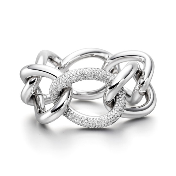 Die Ketten der "Grace" Kollektion sind echte Originale von IsabelleFa, welche dort bereits seit 1955 in Handarbeit angefertigt werden. Von schmalen Designs bis hin zu den ikonischen Highlight Armbändern von IsabelleFa mit einer Breite von 39 mm. Handgefertigtes "Gourmette" Highlight Armband aus 18 Karat Gold mit einem wunderschönen 6,63 ct. Brillant-Pavé (G/VVS-VS) in einem Kettenelement. Das Armband hat eine Breite von 39 mm. Ein unsichtbarer Klappverschluss vollendet das reduzierte Design. Der Brillant im Verschluss zeigt seiner Trägerin die Stelle, an welcher Sie Ihr Schmuckstück öffnen kann - Ein typisches Merkmal von IsabelleFa. Ein Collier und ein Armband können miteinander verbunden werden, um sie als lange Kette zu tragen.