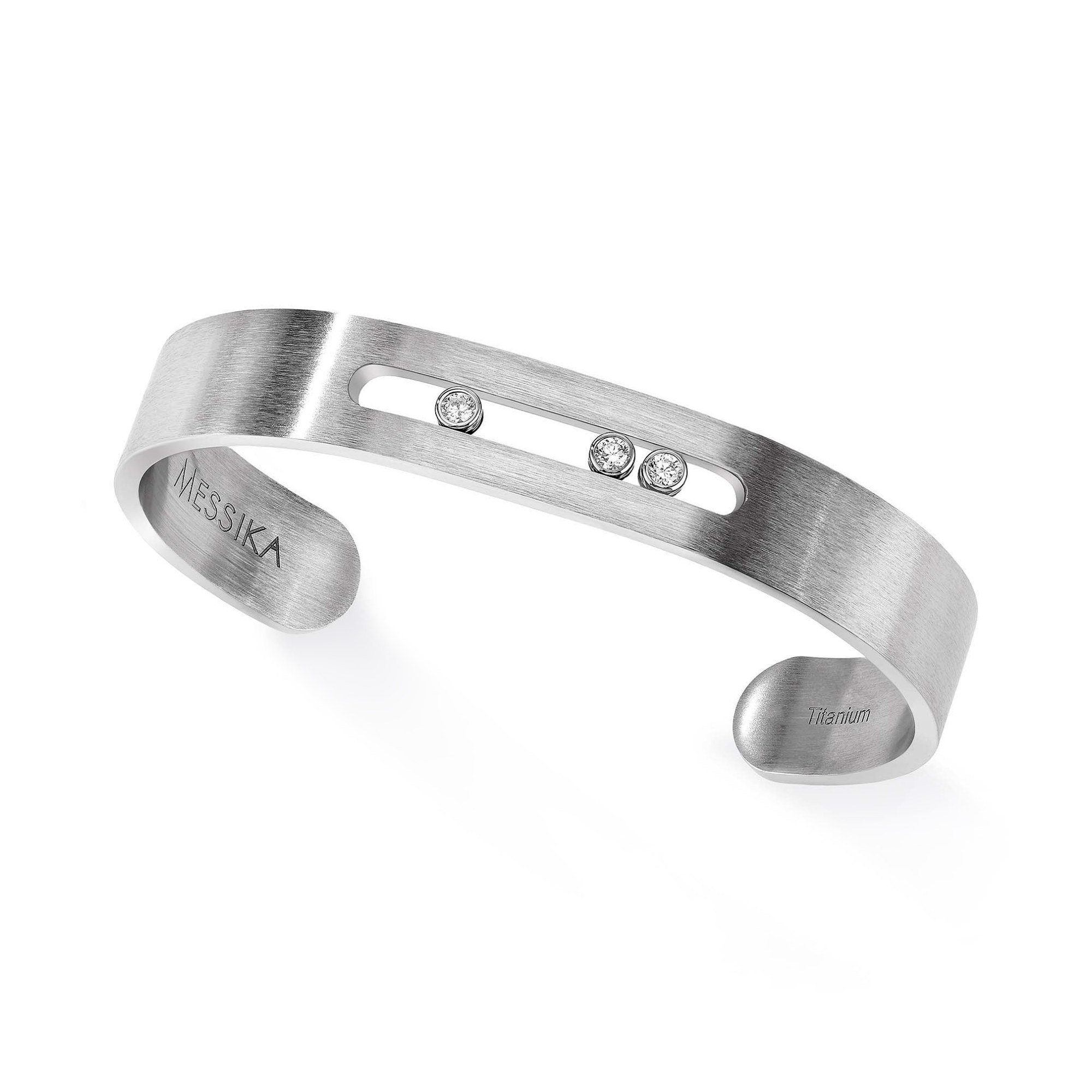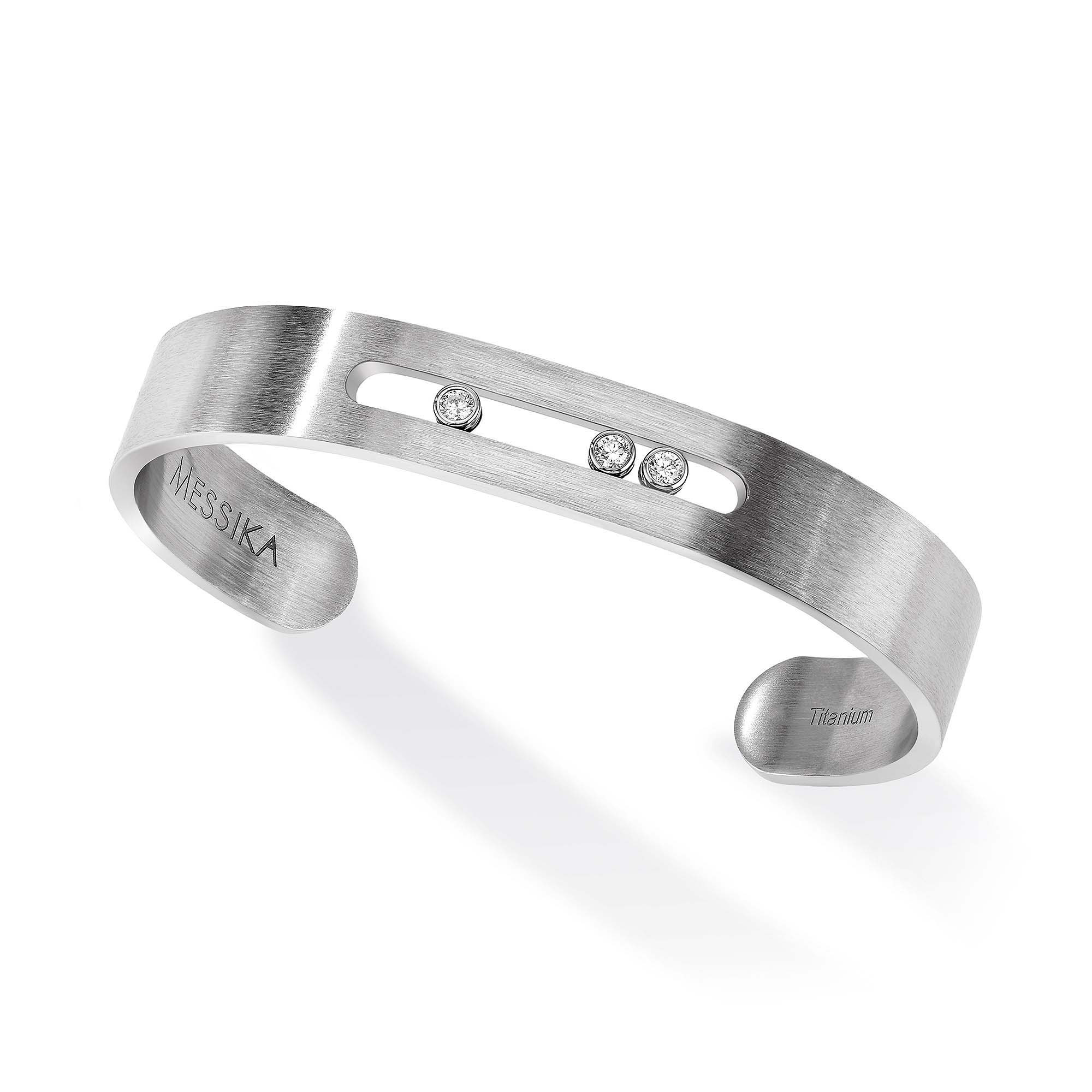 Ref. 06549-TN - Leichtigkeit und Anziehungskraft - Die Robustheit von Titan, die Kraft von Diamanten. Messika ist bekannt für seine Innovationen und hat nun seine symbolische Move Kollektion auch für Männer entworfen. Um die Kontraste zu akzentuieren, hat die Maison drei Ringe und drei Armreife entworfen, die die Robustheit von Titan mit der Kraft von Diamanten kombiniert. Und weil alle Kreationen von Valérie Messika einen Fokus auf Leichtigkeit setzen, wiegt nicht ein einziges Schmuckstück mehr als ein paar Gramm. Das Prinzip des befreiten Diamanten formt einen natürlichen, wesentlichen Teil dieser Kreationen, die in drei grundlegenen Finishes präsentiert werden und jeden Tag Männer-Looks vervollständigen.