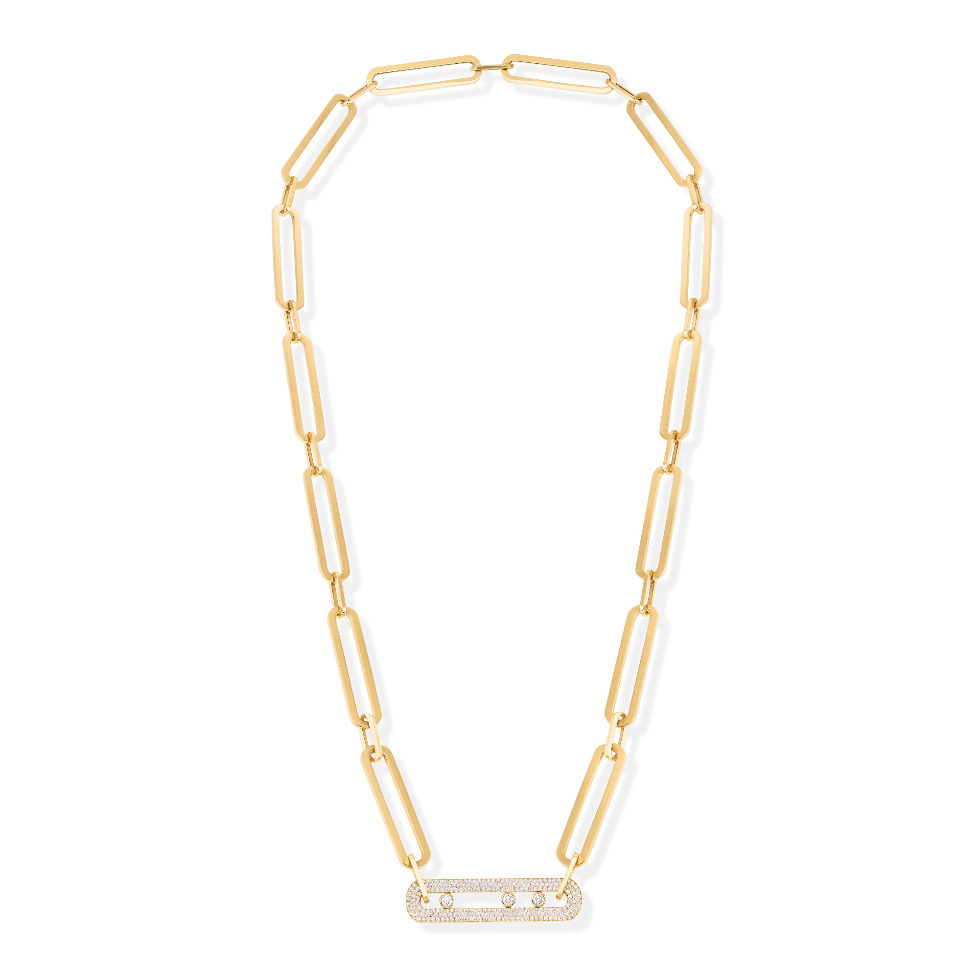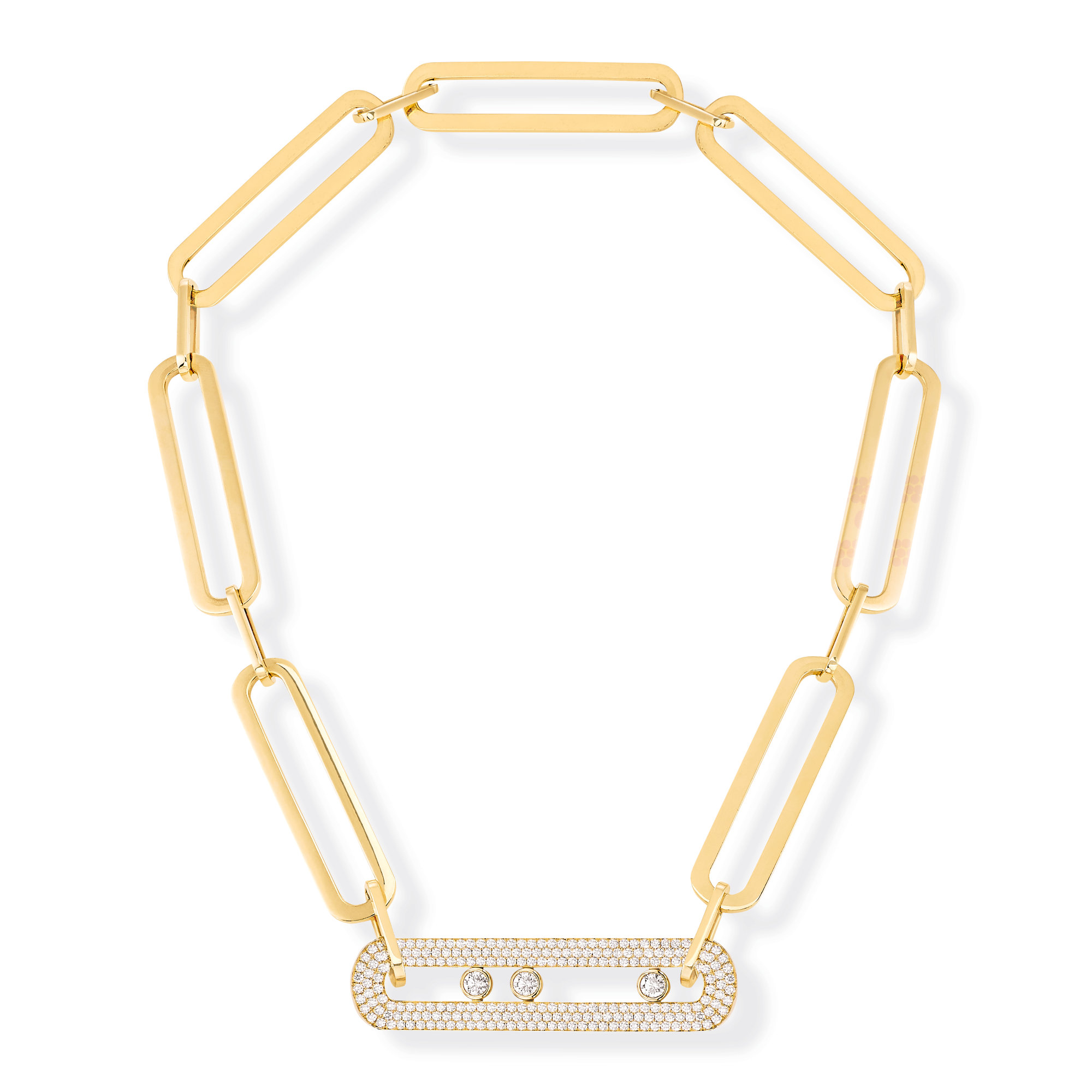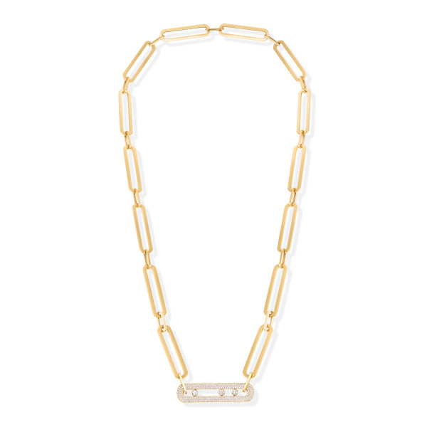 Nr. 06768-YG - Die Move 10th Juwelierkollektion setzt Ringe, Armspangen aus Diamant und lange Ketten mit Anhänger in einem modernen, ultra-grafischen Stil in Szene. Drei Diamanten, ein goldener Käfig, eine Vielzahl an Möglichkeiten ... Move ist DER Diamantschmuck für Damen, dank dem Messika ihren Stil fand und sich diesen Ruf als moderne Juwelierkunst und Haute Joaillerie schmiedete.