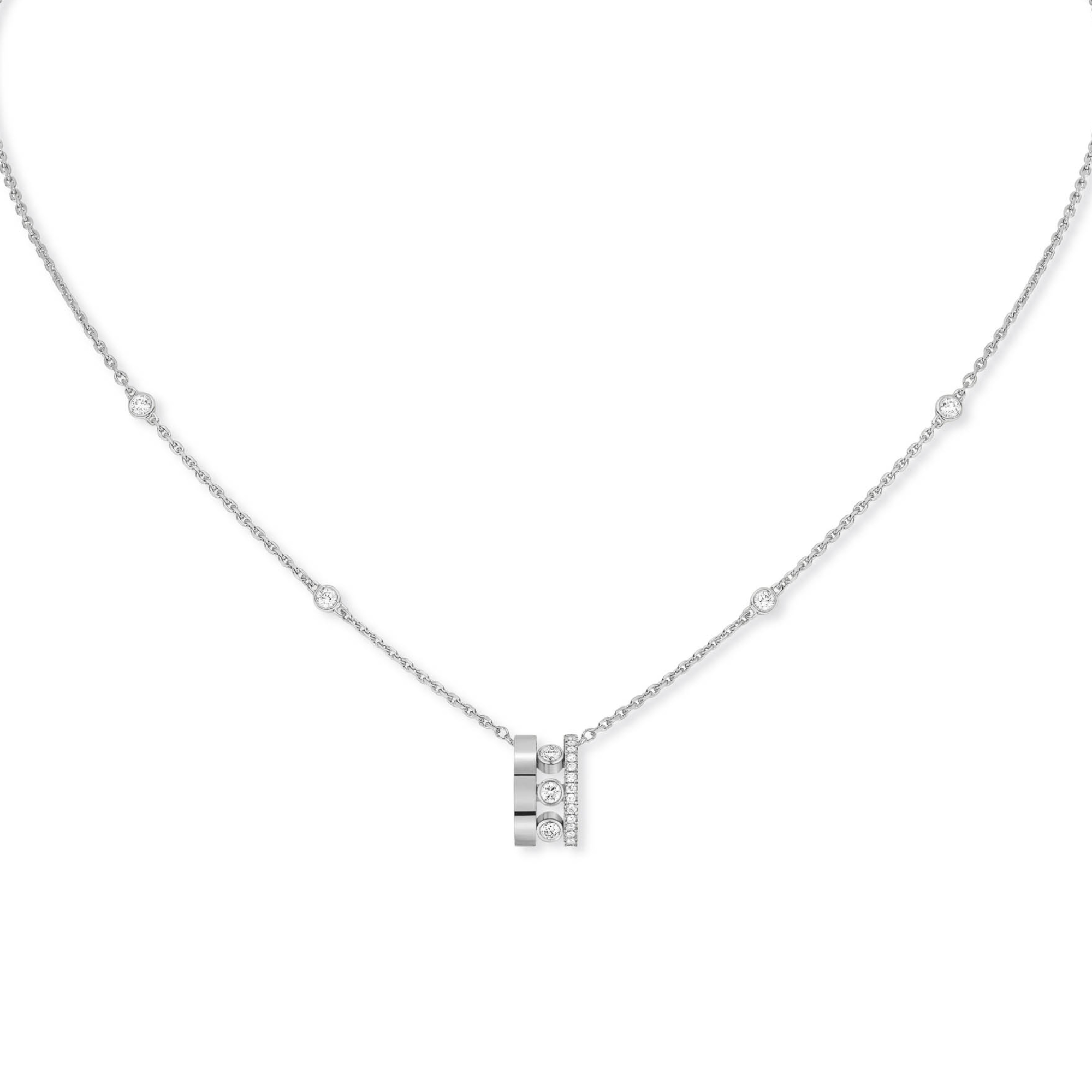 Ref. 07158-WG - Dieses Diamantcollier mit Anhänger aus 18 Karat Weißgold übernimmt alle Codes der Juwlierkollektion Move Romane: Brillanten Move, asymmetrische Linien, Kontrast zwischen poliertem Gold und mit Diamanten ausgefasster Fläche ... Das Diamantcollier aus Weißgold kann allein oder in Kombination mit anderen getragen werden. Der diskrete Schimmer des Weißgolds macht es zu einem perfekten Damenschmuck für den Alltag. Anmerkung: Diamanten im Brillantschliff zieren die Kette für zusätzliche Leuchtkraft. Lassen Sie sich von diese Diamant-Halskette mit Anhänger aus Weißgold verzaubern und entdecken Sie die gesamte Kollektion mit Diamantcolliers von Messika.