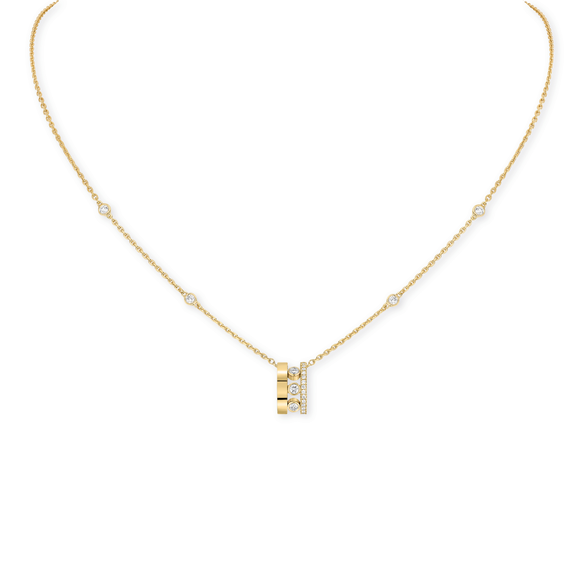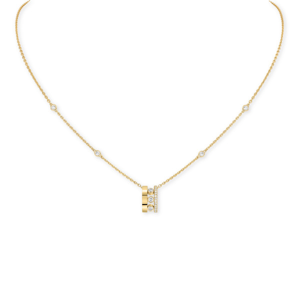 Ref. 07158-YG - Dieses Diamantcollier mit Anhänger aus 18 Karat Gelbgold übernimmt alle Codes der Juwlierkollektion Move Romane: Brillanten Move, asymmetrische Linien, Kontrast zwischen poliertem Gold und mit Diamanten ausgefasster Fläche ... Dieser Diamantschmuck aus Gelbgold unterstreicht das Dekolleté diskret mit einem sanften Schimmer. Die Anhänger-Kette aus Diamanten und Gelbgold Move kann allein oder zusammen mit anderen getragen werden. Anmerkung: Diamanten im Brillantschliff zieren die Kette für zusätzliche Leuchtkraft. Entdecken die gesamte Messika Kollektion mit Diamant-Ketten sowie alle Schmuck- und Haute Joaillerie-Kollektionen der Maison.
