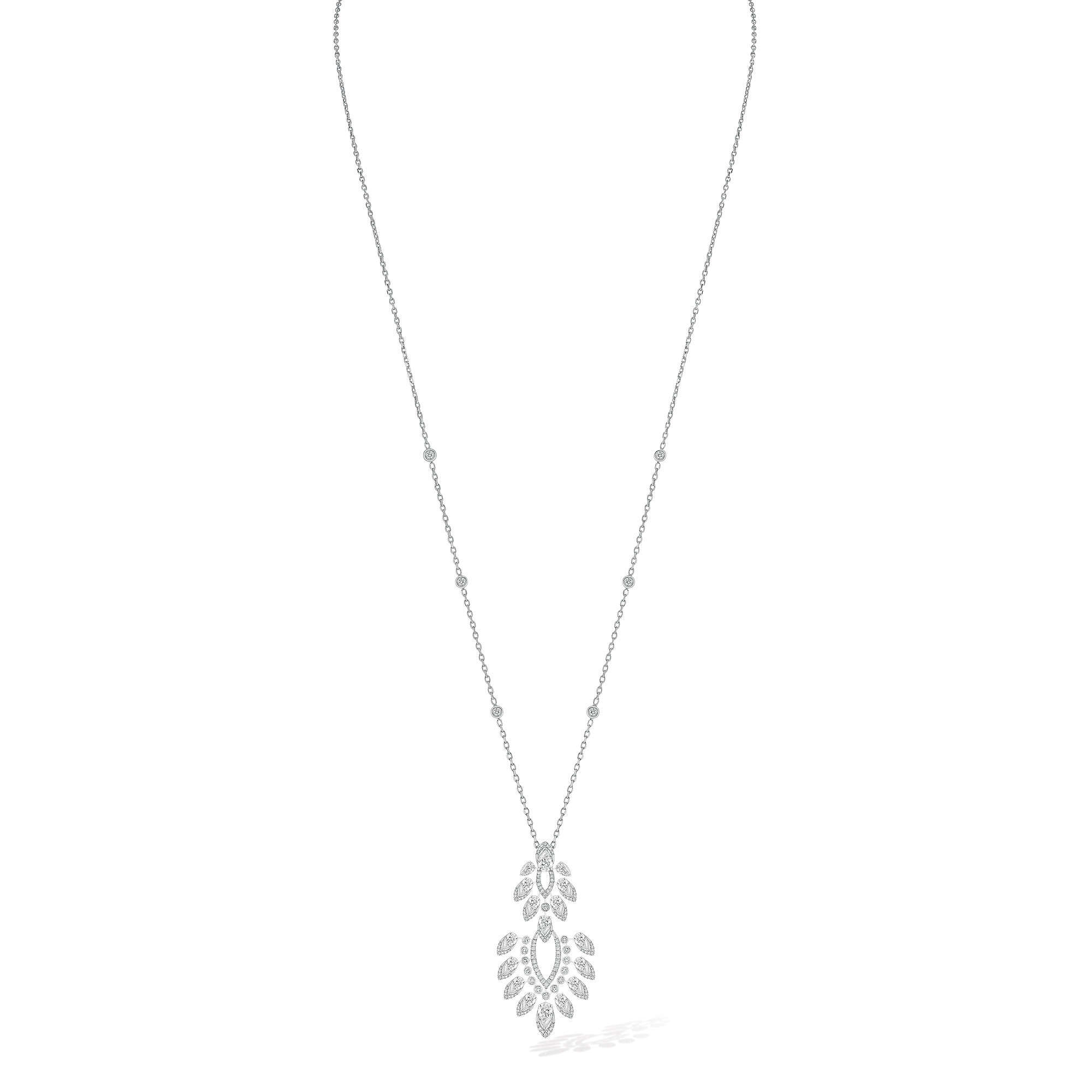Ref. 07358-WG - Das Herzstück der Desert Bloom Schmuckkollektion ist diese lange Diamantkette aus 18 Karat Weißgold. Das Messika Schmuckstück entfaltet mit seinen Diamanten im Tropfen- und Brillantschliff, die die Linien einer stilisierten Blüte nachempfinden, eine starke Wirkung und bringt an Dekolletés sowohl Eleganz als auch Lässigkeit zum Ausdruck. Die Vorzüge dieses Luxusschmuckstücks von Messika? Die Diamanten in Krappenfassung an der Kette lassen Ihr Dekolleté erstrahlen. Mit ihrem Schiebesystem kann sie nach Lust und Laune als längere oder kürzere Version an all Ihre Outfits angepasst werden.