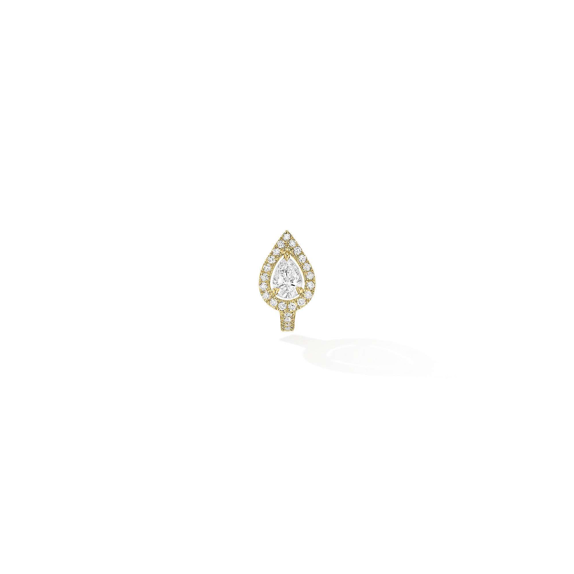 Ref. 07442-YG - Valérie Messika dachte an alle Frauen, die sich nicht die Ohren durchstechen lassen wollen oder die noch keine Ohrlöcher haben und entwarf dieses Jahr eine ganze Linie einzelner Diamant-Ohrclips mit einem offenen Ring, die an das Ohr und die Stelle, an der Sie den Schmuck tragen möchten, angepasst werden können. Dieser einzelne My Twin Diamant-Ohrclip aus Gelbgoldwurde von Hand gefertigt und mit einer Vielzahl von funkelnden Diamanten, darunter einem Diamant im Tropfenschliff in der Mitte, besetzt. Der einzelne Diamant-Ohrring aus Gelbgold kann allein oder in Kombination mit anderen Luxus-Ohrringen, wie diesem Luxus-Schmuckstück getragen werden