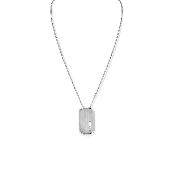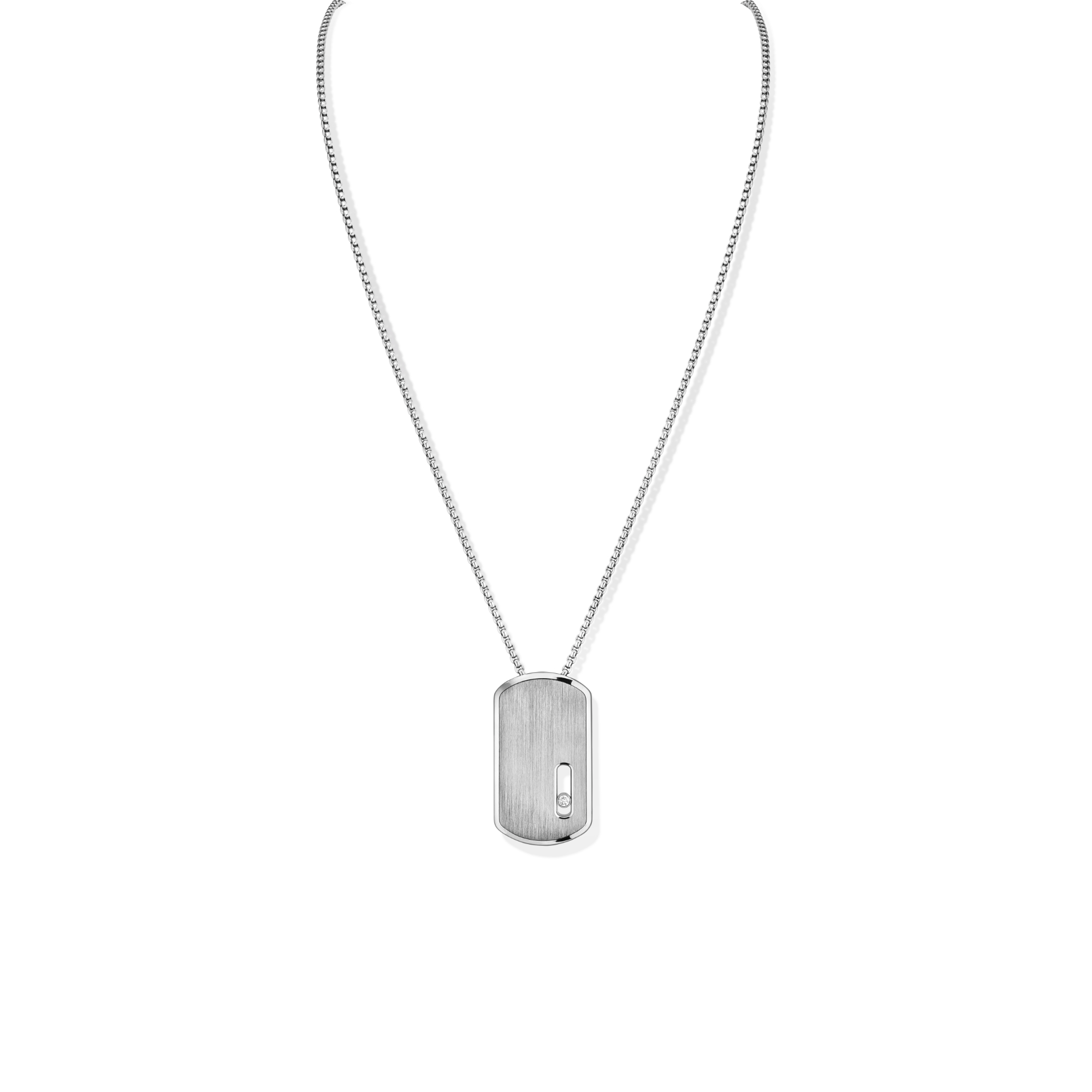 Ref. 12538-TN - Die Schmuckkollektion Move Titanium avancierte innerhalb kürzester Zeit zum unerlässlichen Must-have der Herrenmode. Hier entwarf Valérie Messika eine Halskette mit militärischen Anklängen, die eine rockige Note in die Kollektion einbringt. Bei dieser Luxus-Herrenkette wurde das gebürstete, von Natur aus hellgraue Titan mit einem beweglichen weißen Diamanten kombiniert, was einen Ton-in-Ton-Effekt voll schlichter Eleganz erzeugt. Diese auch in den Titan-Farbvarianten Schwarz und Graphit erhältliche Diamantkette ist ein perfektes Accessoire, um jeden Look aufzupeppen.
