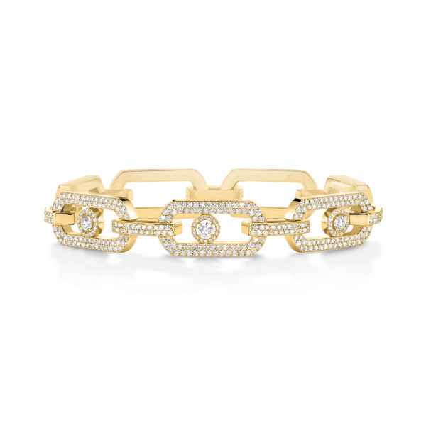 Alles an diesem Armband strahlt Charakter, Stärke und Kühnheit aus. Trauen Sie sich, es zu tragen? Die mit Diamanten ausgefassten Flächen auf beiden Seiten sorgen für einen unvergleichlichen Glanz, der alle Move-Motive, die die Glieder dieser Kette im XXL-Format bilden, umso mehr zur Geltung bringt.