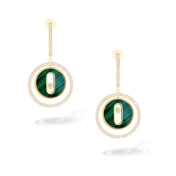 Ref. 12965-YG - Lucky Move ist eine Neuinterpretation der Glücksmedaille und eine Schmuckkollektion, die Valérie Messika als Objekt der Selbstbestätigung konzipiert hat. Jeder Steinfarbe ist ein Mantra zugeordnet. Neu in der Kollektion sind die Ohrhänger aus Gold, Diamanten und Edelsteinen. Runden Sie Ihren Stil mit diesen Ohrringen aus Gelbgold und Malachit ab, die eine strahlende Harmonie zwischen Diamanten und farbigen Steinen offenbaren. Was auch immer Ihre Ambitionen sind, es ist möglich, sie zu erreichen, vorausgesetzt, diese Version von Ihnen stimmt mit Ihren Werten überein. Be Authentic ! So lautet das Mantra dieses Schmuckstücks. Mit diesen Diamantohrringen für Damen können Sie Ihre Authentizität unterstreichen.
