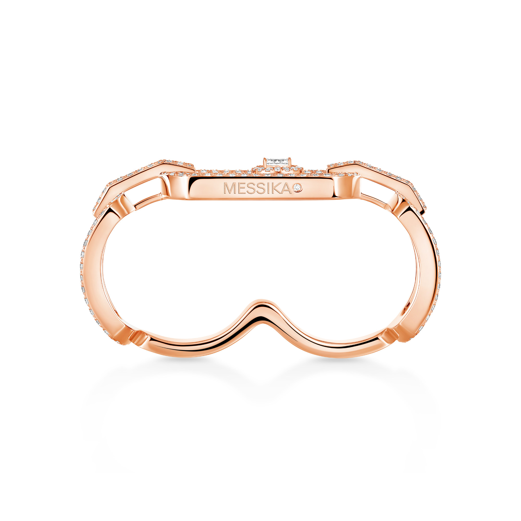 Ref. 13185-PG - Der mit Diamanten ausgefasste So Move Zwei-Finger-Ring aus Roségold ist ein echtes Modeaccessoire und ein kraftvolles und verwegenes Schmuckstück. Der perfekt positionierte, bewegliche Diamant, der von einem unverwechselbaren Halo umgeben ist, vibriert zwischen den Fingern und verstärkt den originellen Charakter dieses Rings. Der Ring, der die zwei Finger umschließt, ist vom Kultmotiv der Maison inspiriert. Das trendige Oversize-Luxusschmuckstück für Damen vereint die gesamte Technik und das Savoir-faire der Juweliermaison für einen hohen Tragekomfort. Als Alternative zum Ring-Stacking an einem Finger ist der So Move Zwei-Finger-Ring ein Schmuckstück und lässt die Hand in einem wirklich intensiven Licht erstrahlen. Stil bis in die Fingerspitzen.