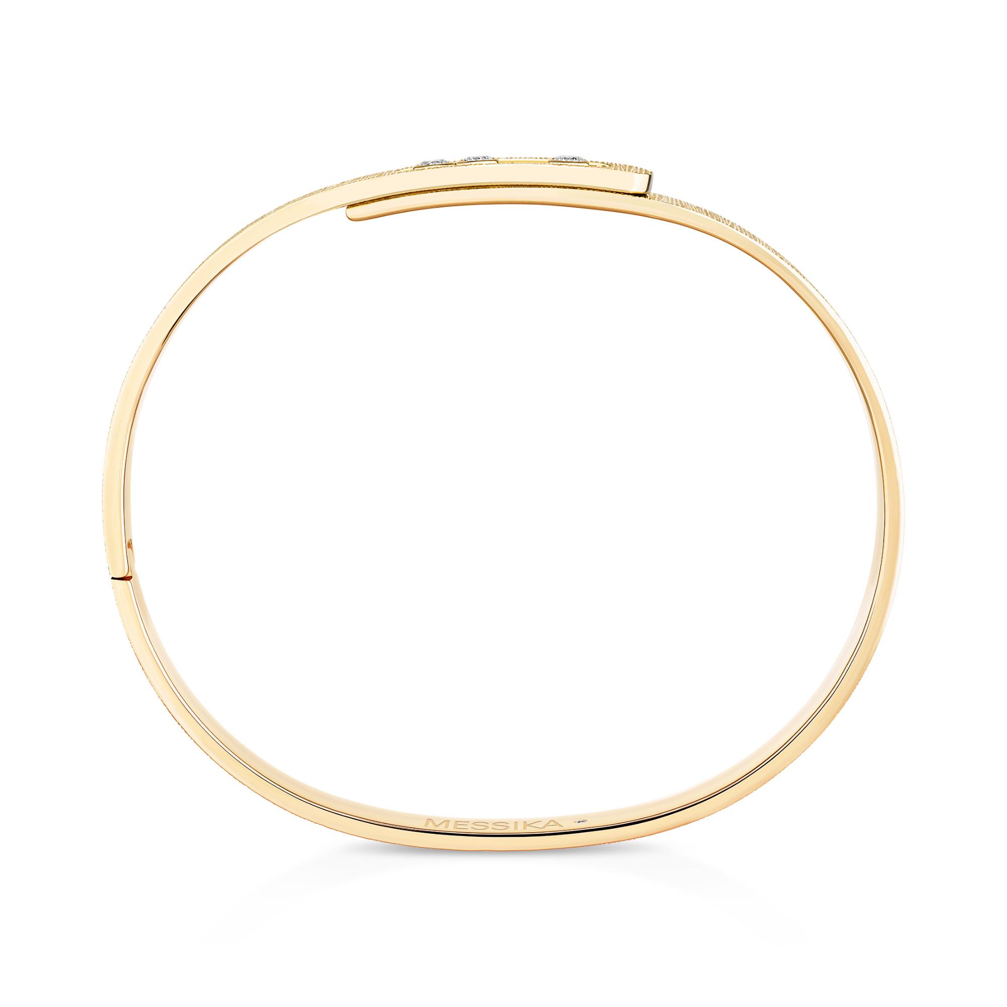 Ref. 14481-YG - Der Move Noa Armreif mit seiner essentiellen Linie und schlichten Eleganz erfindet sich in einer Variante aus ziseliertem Gelbgold und Diamanten neu. Das Spiel mit den Texturen und Reliefs des Goldes verleiht diesem luxuriösen Schmuckstück, das eine Ikone der Maison ist, eine neue Intensität. Ein zeitloses Diamantschmuckstück, bei dem die Bewegung der Diamanten perfekt mit allen Nuancen des strukturierten Goldes harmoniert. Jede Ziselierung ist von Hand graviert und spiegelt die Präzision der Juwelierkunst wider. Das unverwechselbare Move Noa Diamantarmband für Herren und Damen kann sowohl allein als auch in Kombination mit den anderen Messika Armreifen getragen werden.
