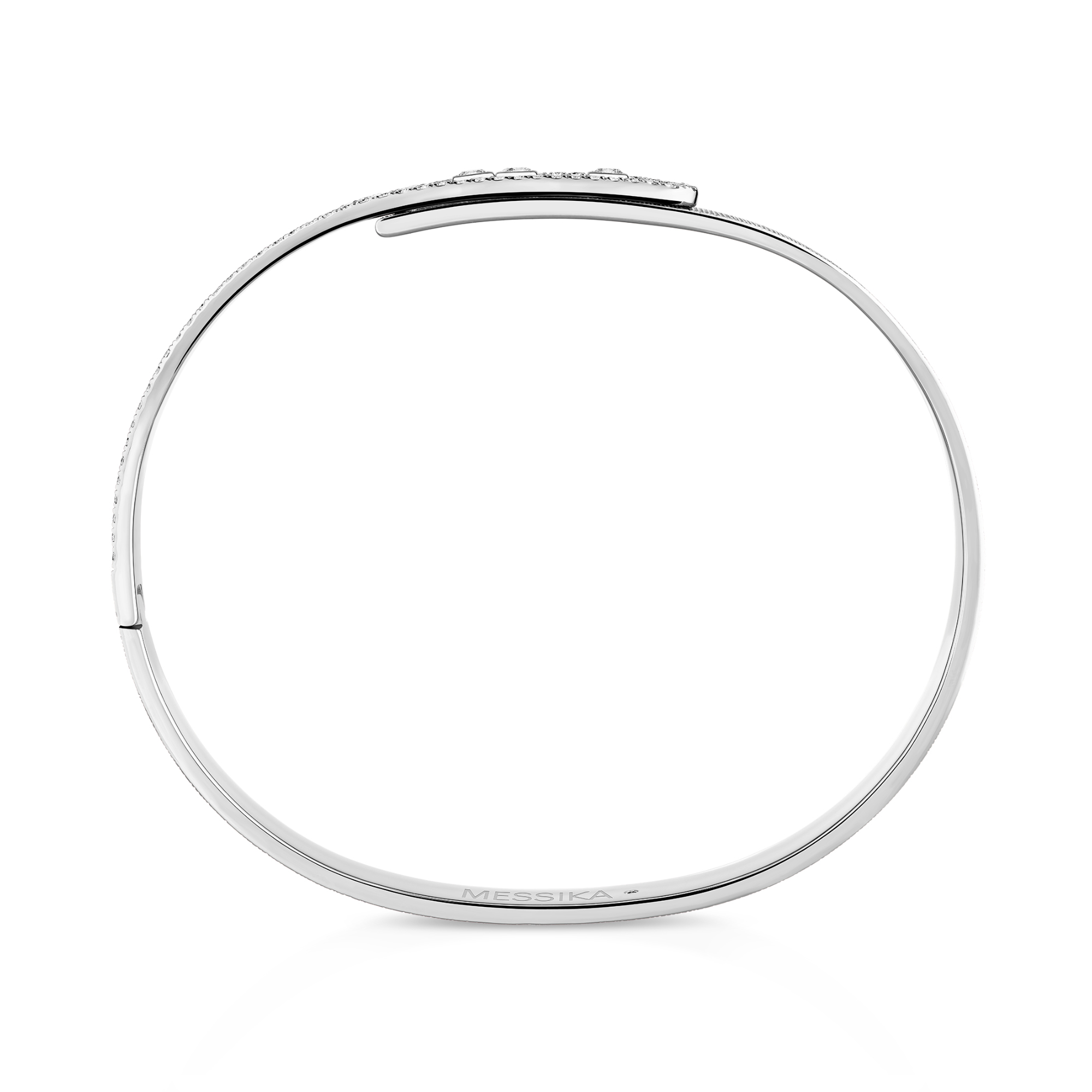 Ref. 14501-WG - Das Kultdesign der Move Noa Schmuckkollektion trifft an einem strahlenden Diamantarmband in einer halb ausgefassten Ausführung auf die Raffinesse von ziseliertem Weißgold. In dieser Variante des Armreifs aus Gold und Diamanten werden Sie das Spiel des Lichts und des Reliefs des strukturierten Goldes in Verbindung mit dem Glanz der drei beweglichen Diamanten und dem Funkeln der mit Diamanten ausgefassten Fläche noch mehr genießen. Das ausdrucksstarke und einzigartige Finish verleiht dem Armband aus Gold und Diamanten einen Seidensamt-Effekt. Die vollständig von Hand und mit höchster Präzision gefertigten Goldstreifen spiegeln die Handschrift der Juwelierkunst und das gesamte Savoir-faire der Schmuck- und Haute-Joaillerie-Maison wider.