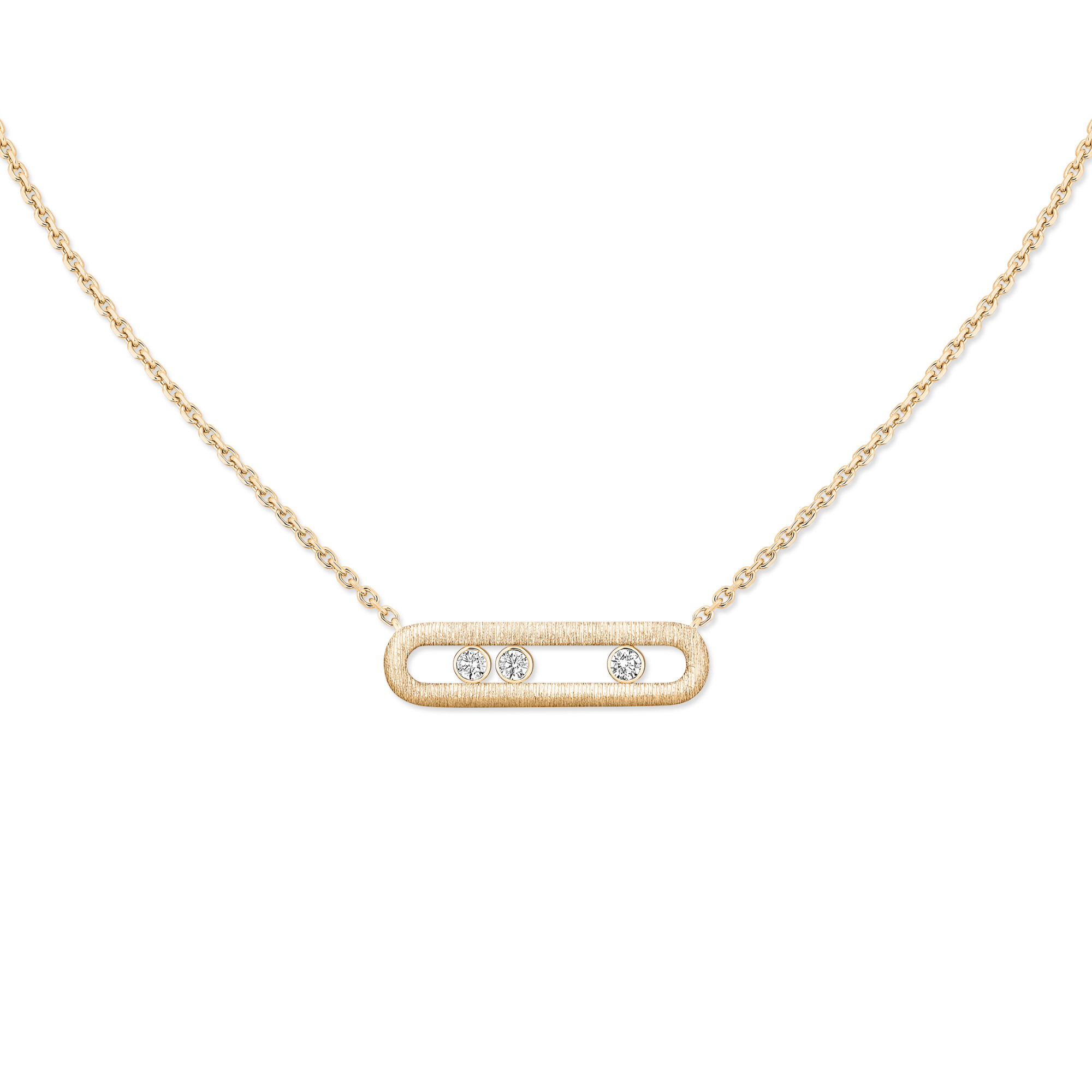 Ref. 14667-YG - Die Raffinesse des ziselierten Gelbgoldes veredelt das Kultdesign der Messika Move Diamantkette für Damen. Diese einzigartige Verarbeitung zeigt das Savoir-faire der Maison: Von Hand graviert, fängt jede Ziselierung das Licht ein und reflektiert es dank der Präzision der Juwelierarbeiten unendlich oft. Die Materialarbeit mit kontrastierenden Reliefspielen verleiht den Luxusschmuckstücken eine subtile Vintage-Aura. Eine Halskette aus Gold und Diamanten, um alle Nuancen Ihrer Einzigartigkeit zu betonen.