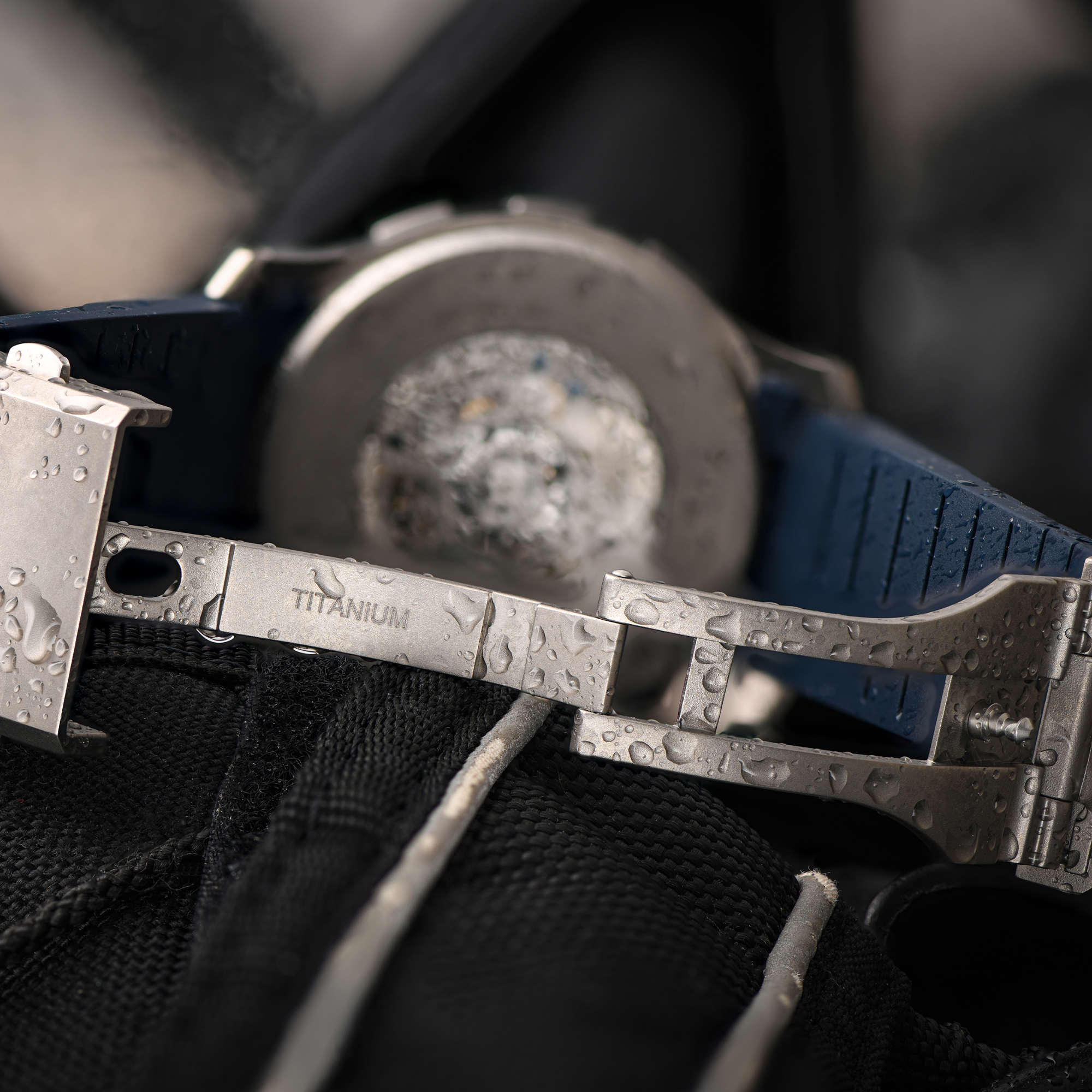 Schwarzes Kautschukarmband mit Titan-Faltschließe