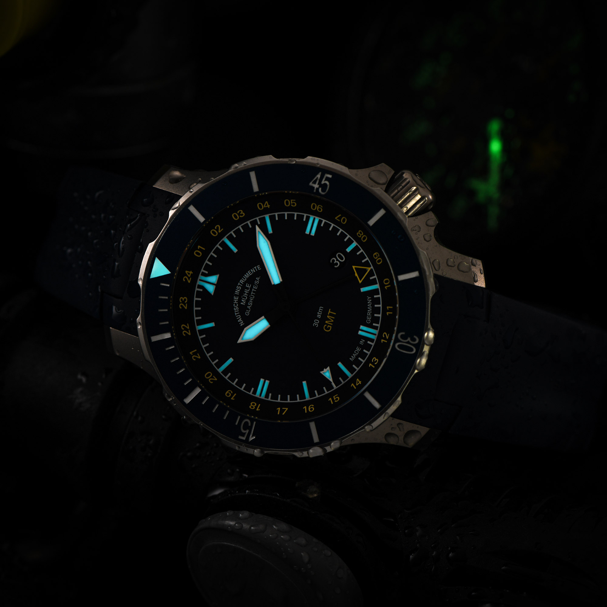 Stundenmarkierungen und Zeiger mit Super-LumiNova belegt