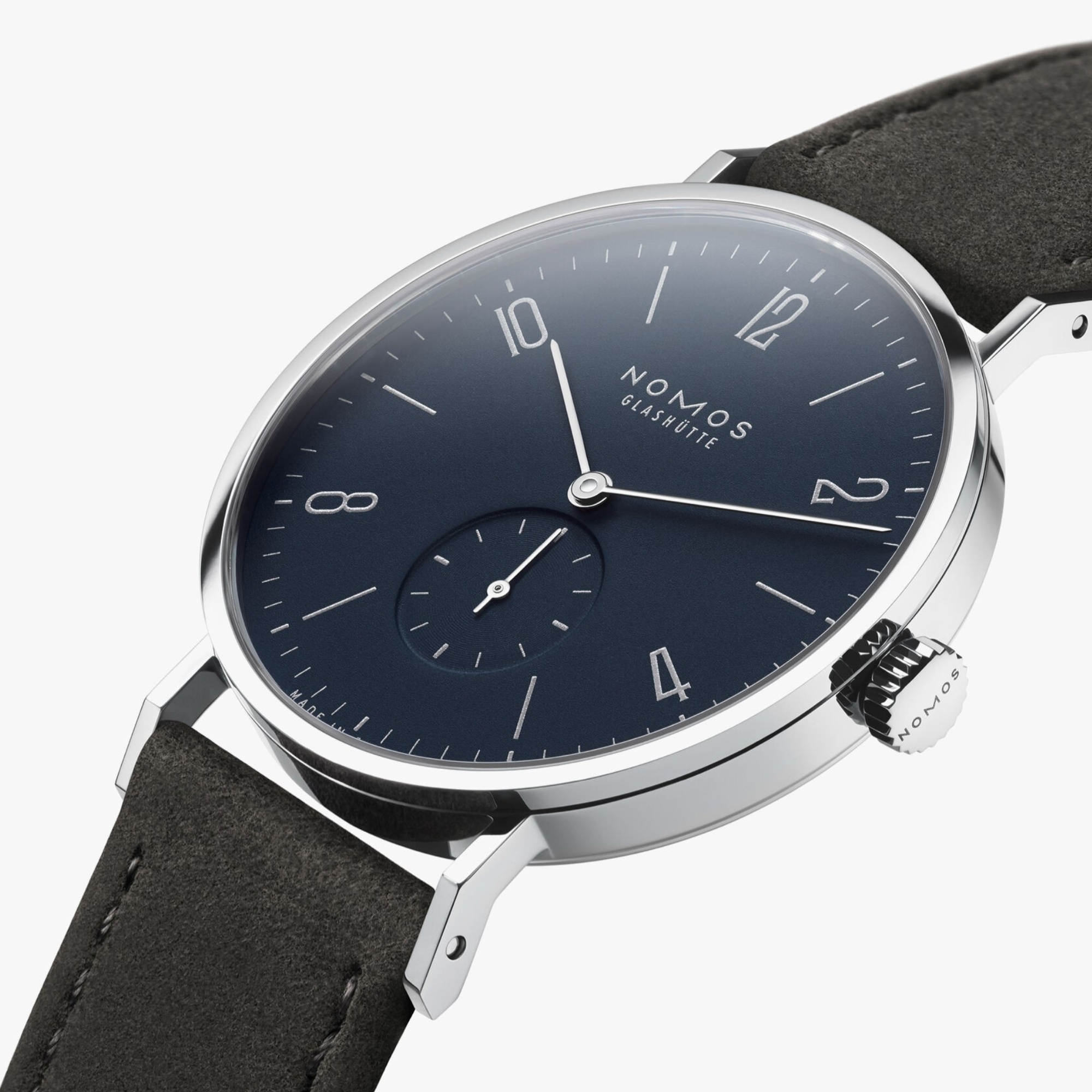 rhodinierte Werkoberflächen mit Glashütter Streifenschliff und NOMOS-Perlage