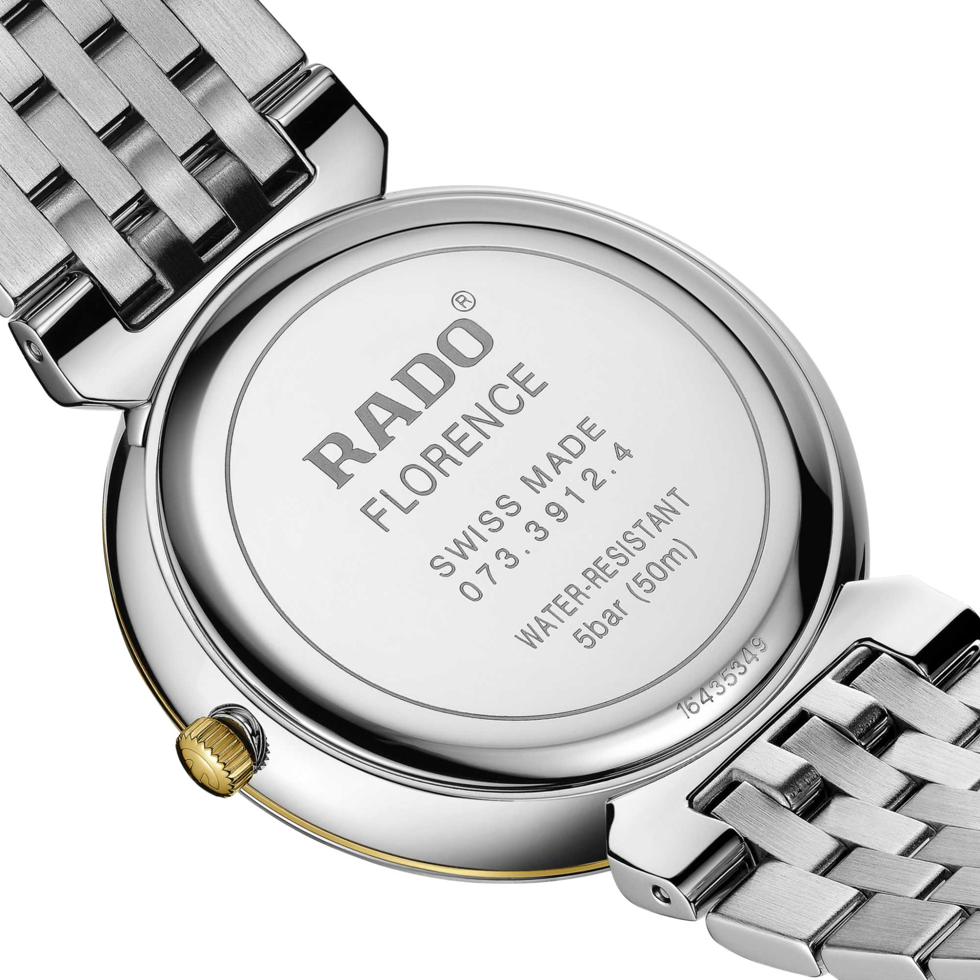 Ref. R48912743 - Das harmonische Design der Rado Florence Classic ruft einem die eleganten Kuppeln und Türme der Stadt in Erinnerung, der die Kollektion ihren Namen zu verdanken hat. Die 38 mm grosse Uhr verfügt über ein gewölbtes Saphirglas mit facettierten Rändern. Abgerundet wird die Gesamtoptik dieses klassischen Zeitmessers durch ein Armband aus poliertem Edelstahl mit gelbgoldfarbenen Mittelgliedern.