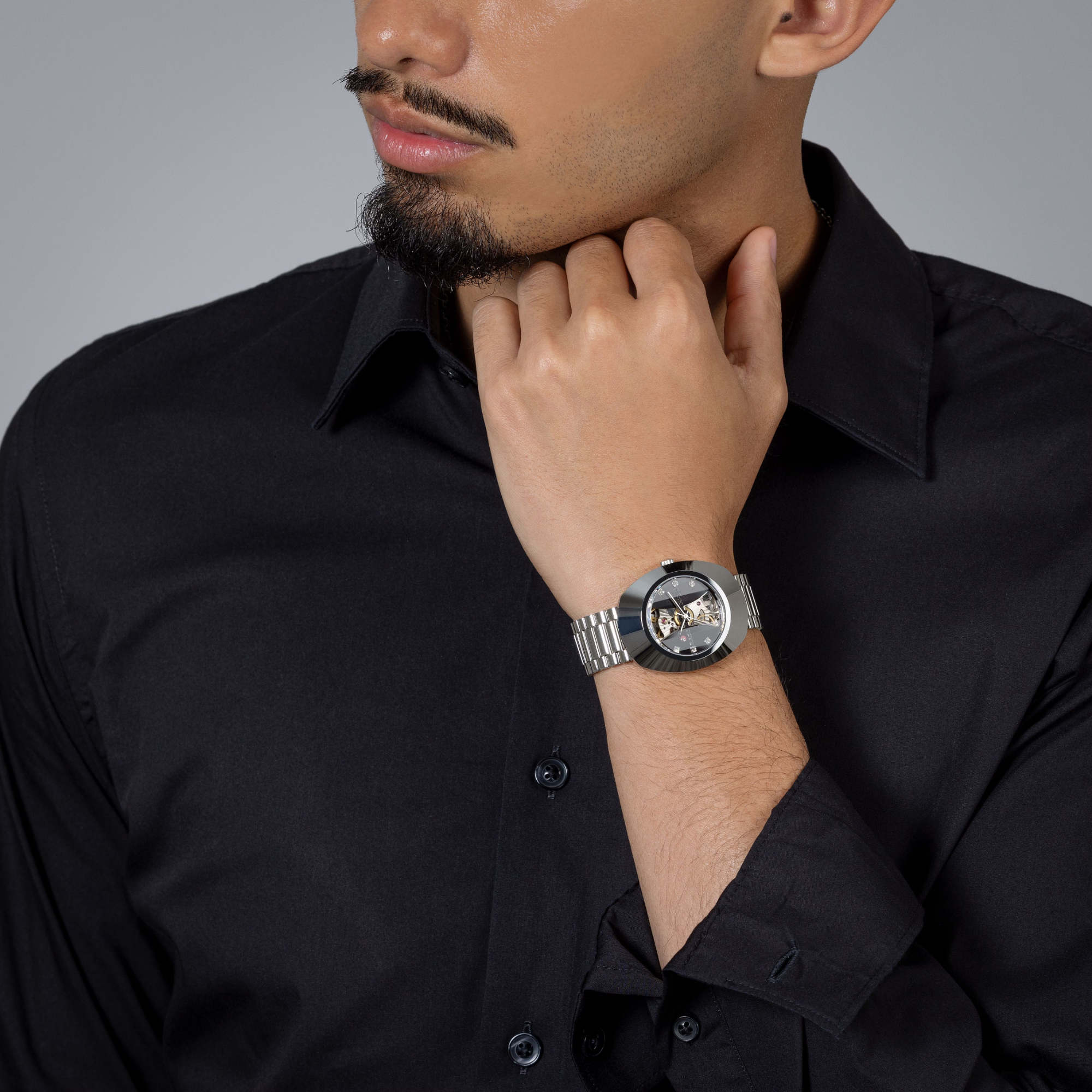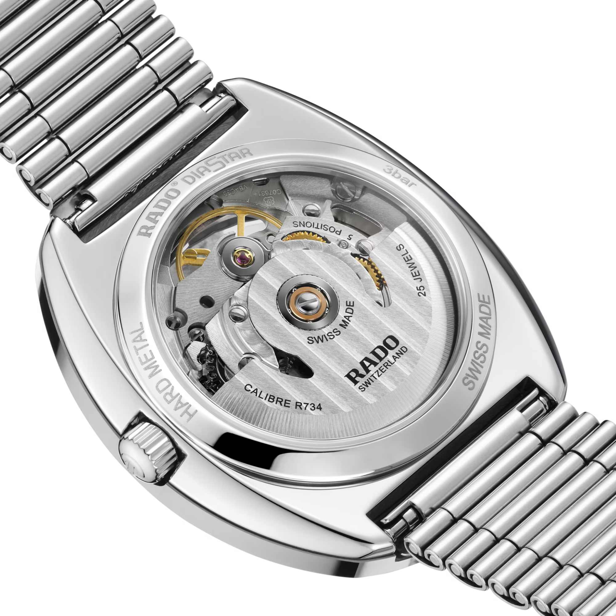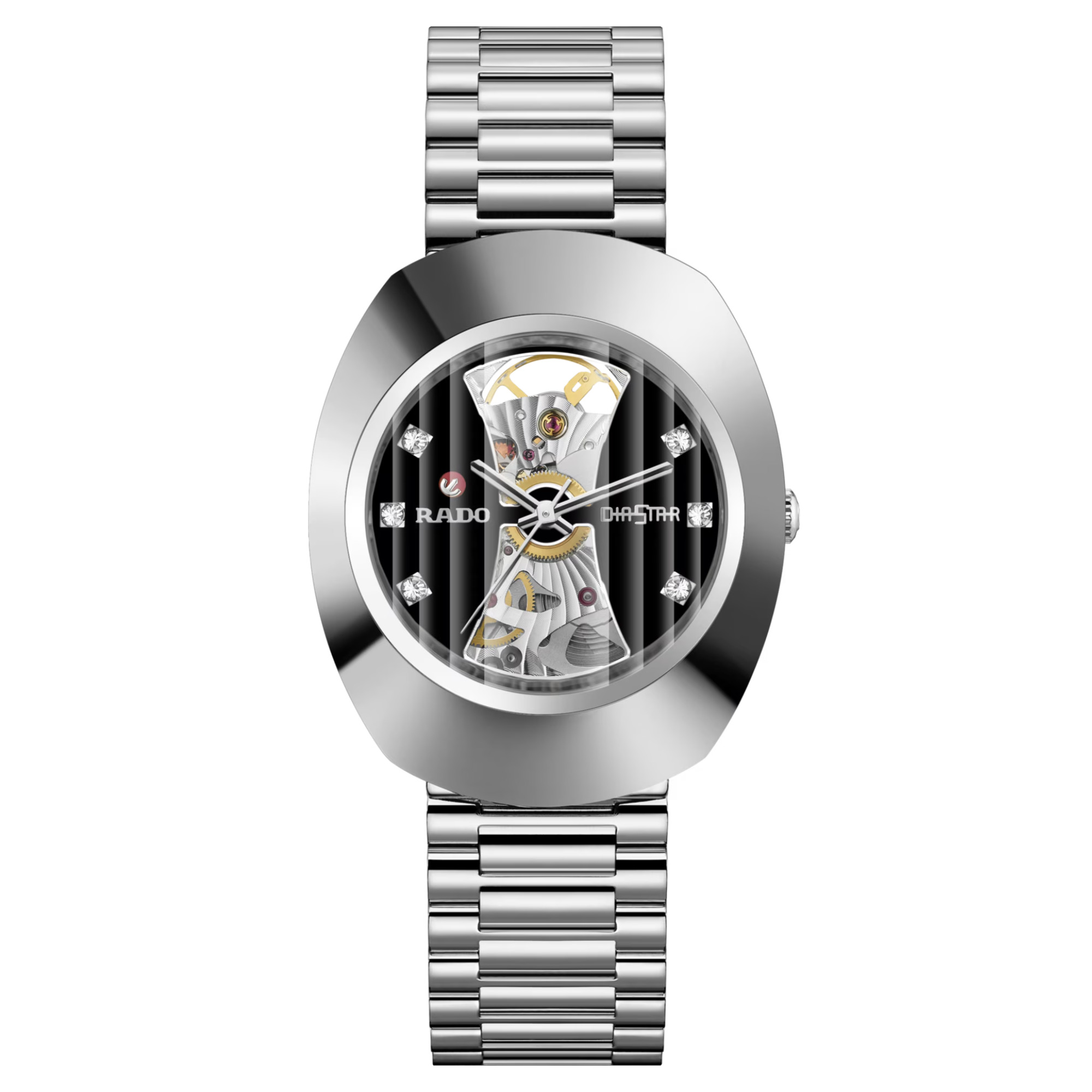 Ref. R12063103 - 1962 revolutionierte Rado mit seiner kratzfesten DiaStar die Welt der Uhrmacherei. Heute verkörpert die Original die auffallende und zeitlose Optik der ersten DiaStar und verfügt über die gleichen Merkmale und Funktionen, die Rado Liebhaber bereits kennen, und den unverwechselbaren Look, den diese lieben. Ihr vertikal facettiertes Saphirglas offenbart ein schwarzes Open-Heart-Zifferblatt mit 6 Zirkoniasteinen. Dabei verleiht das Open-Heart-Design dem Automatikwerk vom Kaliber R764 mit 80 Stunden Gangreserve und guillochiertem Sonnenschliff-Dekor eine etwas leichtere Optik.