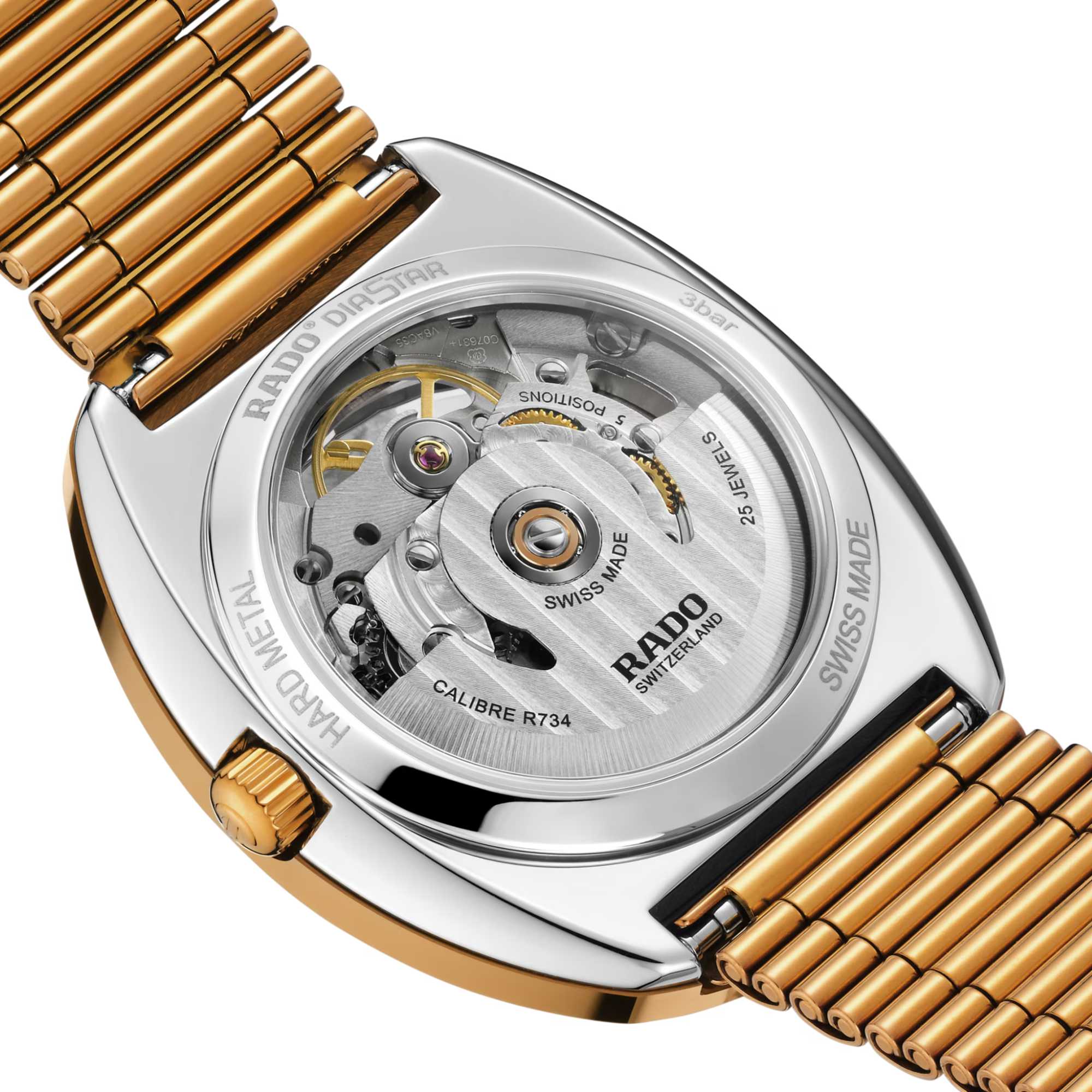 Ref. R12065303 - 1962 revolutionierte Rado mit seiner kratzfesten DiaStar die Welt der Uhrmacherei. Heute verkörpert die Original die auffallende und zeitlose Optik der ersten DiaStar und verfügt über die gleichen Merkmale und Funktionen, die Rado Liebhaber bereits kennen, und den unverwechselbaren Look, den diese lieben. Ihr vertikal facettiertes Saphirglas offenbart ein braunes Open-Heart-Zifferblatt mit 6 Zirkoniasteinen. Dabei verleiht das Open-Heart-Design dem Automatikwerk vom Kaliber R764 mit 80 Stunden Gangreserve und guillochiertem Sonnenschliff-Dekor eine etwas leichtere Optik.