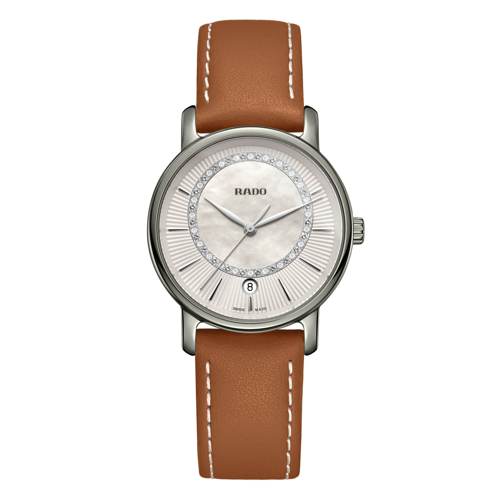 Weißes Perlmutt mit Indizes, 24 Brillanten 0,069 Karat