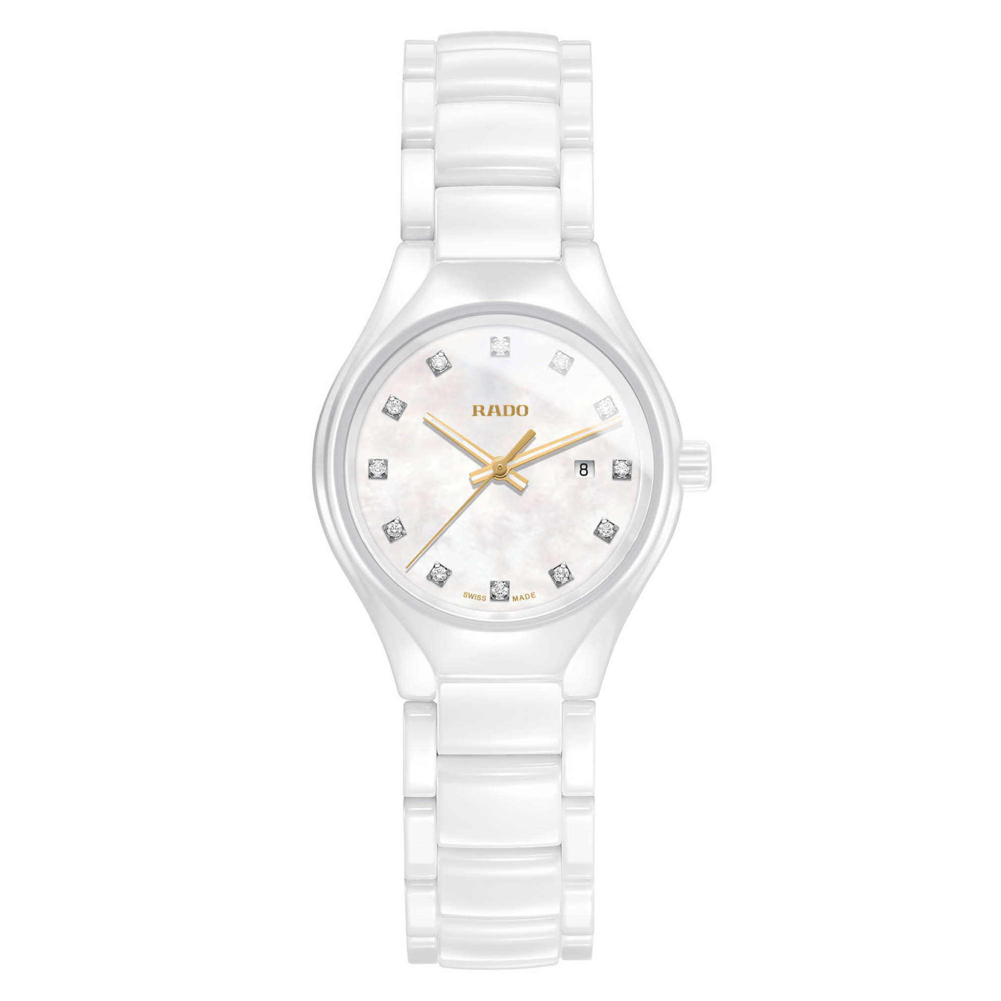 Weißes Perlmutt mit Diamantindizes, 12 Diamanten, 0.096 Karat