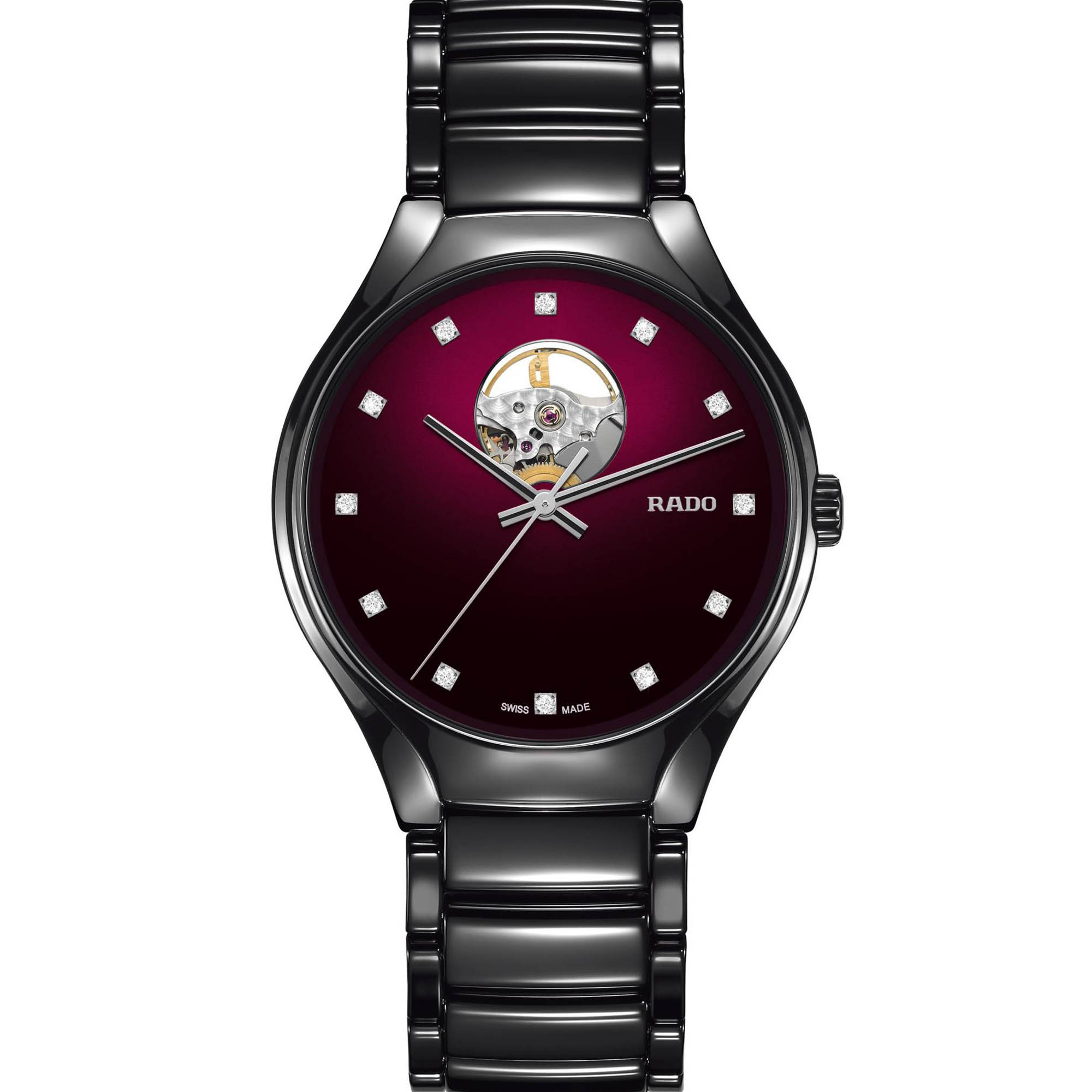 Ref. R27107742 - Besonders sinnlich wirkt die True Secret Automatic. Sie gibt durch einen Ausschnitt im tiefroten Zifferblatt ihr Geheimnis preis und erlaubt einen Blick auf die Unruh, das schwingende Herz des mechanischen Werks. Zwölf Diamanten ersetzen die Ziffern und signalisieren puren Luxus – ein wahres Liebesbekenntnis in Rot.