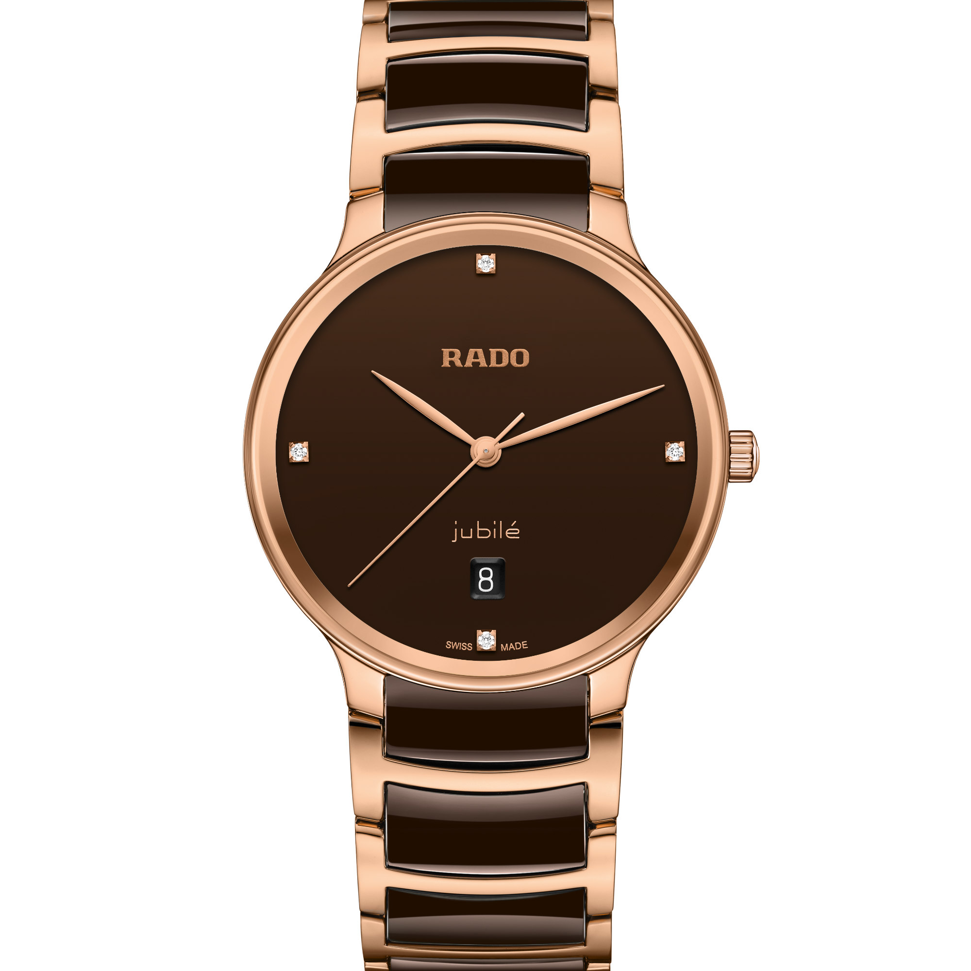 Ref. R30023712 - Die klassische Centrix Quartz Diamonds wurde nicht nur technisch, sondern auch ästhetisch überarbeitet. Beim neuen Modell reicht das gewölbte Saphirglas bis hin zum Rand und scheint nahtlos in das sanft gerundete Gehäuse überzugehen. Die Gesamtoptik dieses ikonischen Zeitmessers wird durch überarbeitete Bandanstösse am Gehäuse und ein Armband aus poliertem roségoldfarbenem Edelstahl mit PVD-Beschichtung und Mittelgliedern aus brauner Hightech-Keramik abgerundet.