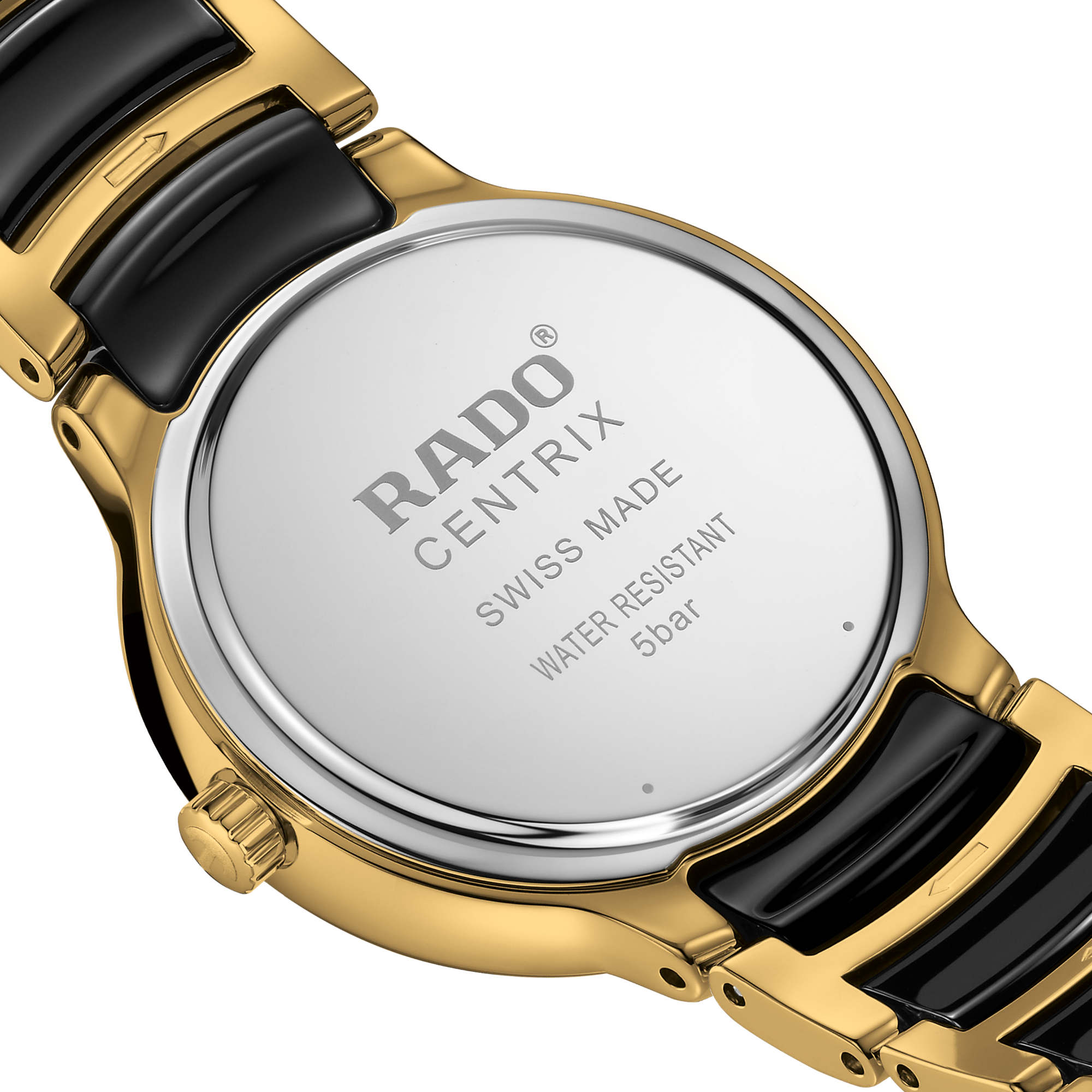 Ref. R30025742 - Die klassische Centrix Quartz Diamonds wurde nicht nur technisch, sondern auch ästhetisch überarbeitet. Beim neuen Modell reicht das gewölbte Saphirglas bis hin zum Rand und scheint nahtlos in das sanft gerundete Gehäuse überzugehen. Die Gesamtoptik dieses ikonischen Zeitmessers wird durch überarbeitete Bandanstösse am Gehäuse und ein Armband aus poliertem gelbgoldfarbenen Edelstahl mit PVD-Beschichtung und Mittelgliedern aus schwarzer Hightech-Keramik abgerundet.