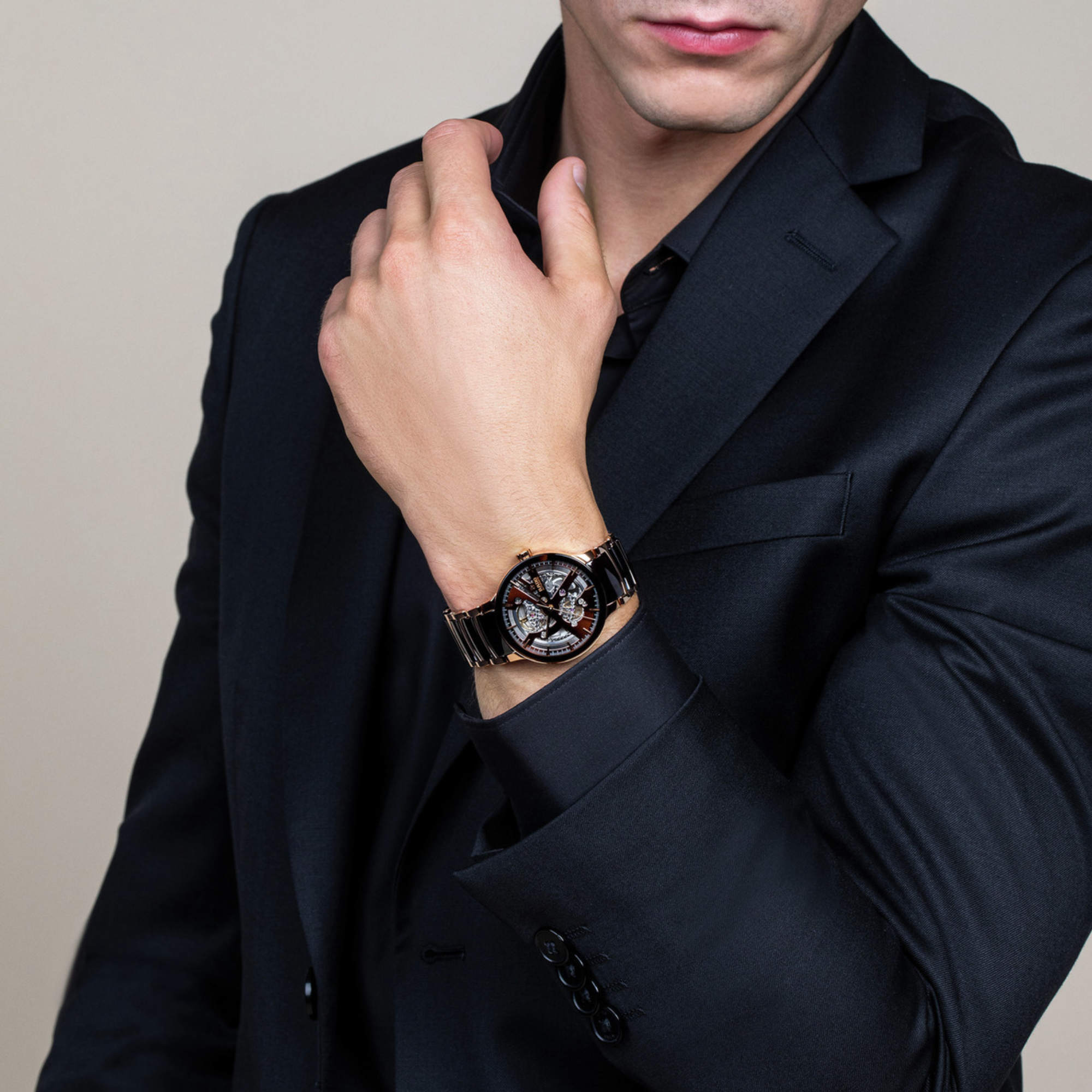 Edelstahl PVD Roségold und Hightech-Keramik braun