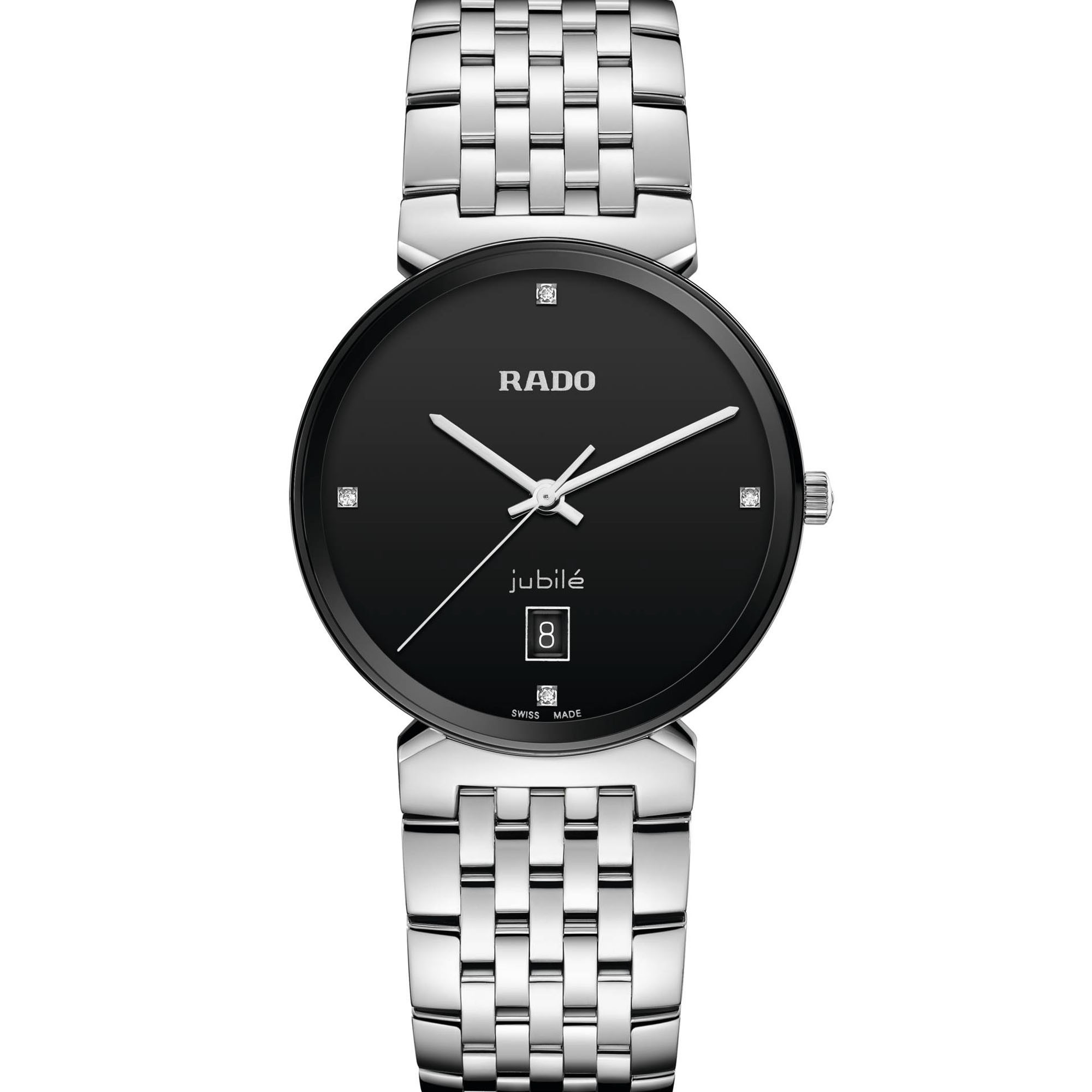 Ref. R48912713 - Das harmonische Design der Rado Florence ruft einem die eleganten Kuppeln und Türme der Stadt in Erinnerung, der die Kollektion ihren Namen zu verdanken hat. Mit ihren hochwertigen Quarzuhrwerken, Rados innovativem metallisierten Saphirglas und dem unvergänglichen Reiz der Diamanten überdauern diese Schweizer Stücke garantiert die Zeit. Rhodinierte Zeiger gleiten über vier Brillantschliff-Diamanten, die bei 3, 6, 9 und 12 Uhr als Indizes gesetzt sind. Ihre funkelnde Präsenz wird in der neuen Florence Classic Kollektion durch die Rückkehr des Jubilé-Logos noch unterstrichen.