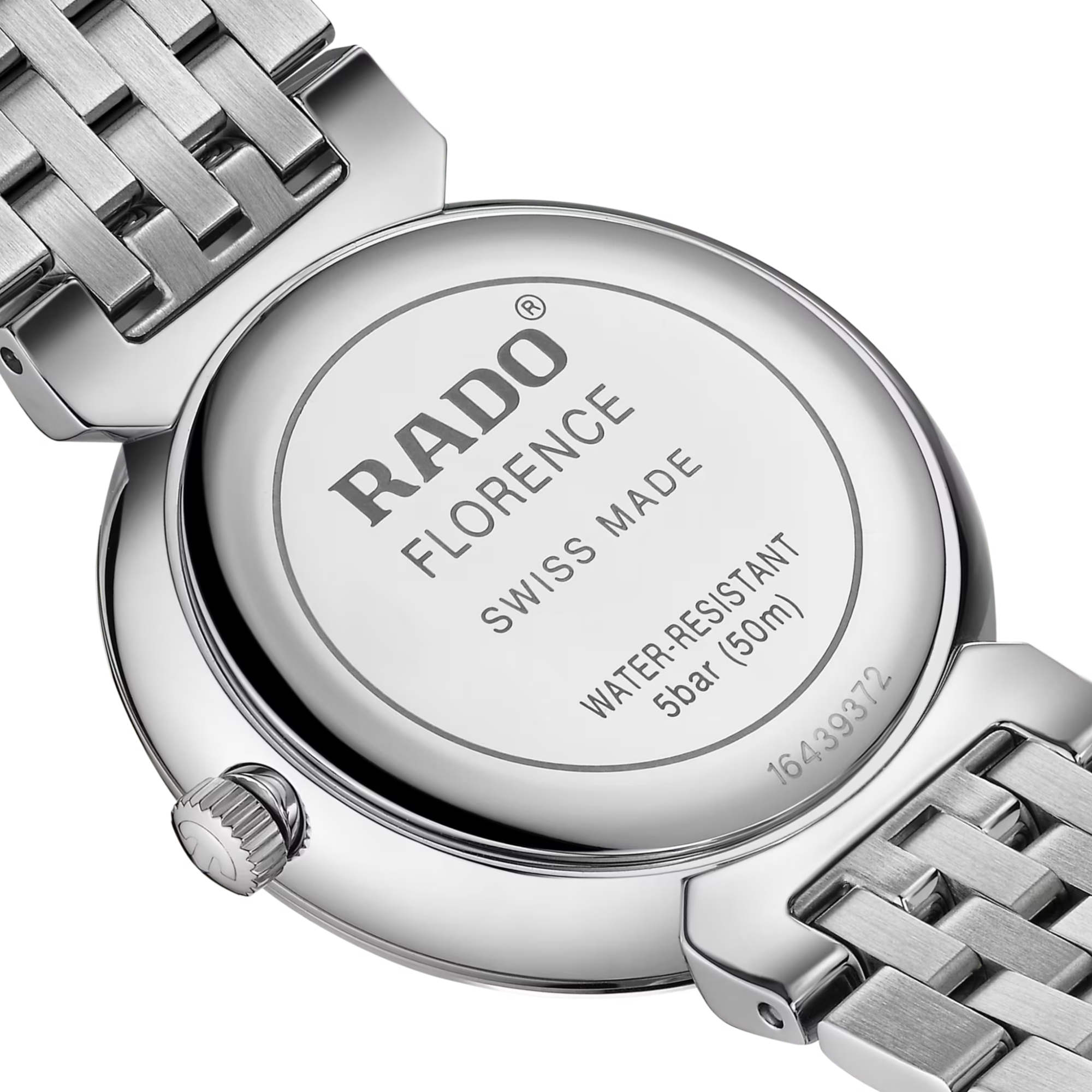 Ref. R48913163 - Das harmonische Design der Rado Florence erinnert an die eleganten Kuppeln und Türme der Stadt, der die Kollektion ihren Namen verdankt. Das Modell wir von dem zuverlässigen Rado Quarzwerk Kaliber R079 mit drei Zeigern angetrieben, das eine besonders hohe Genauigkeit und Stossfestigkeit garantiert.