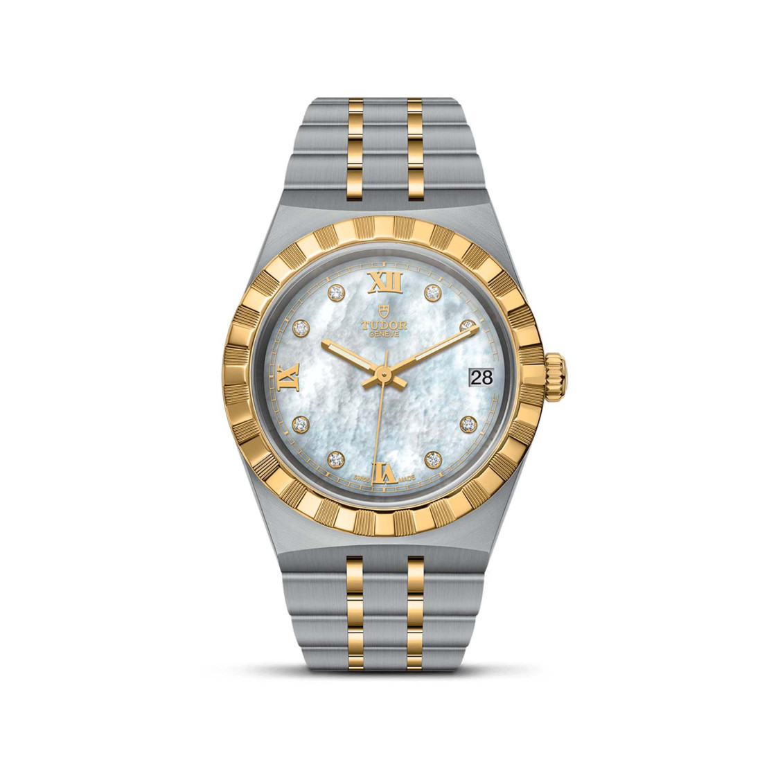Weißes Perlmutt mit Diamantindizes und applizierten römischen Ziffern